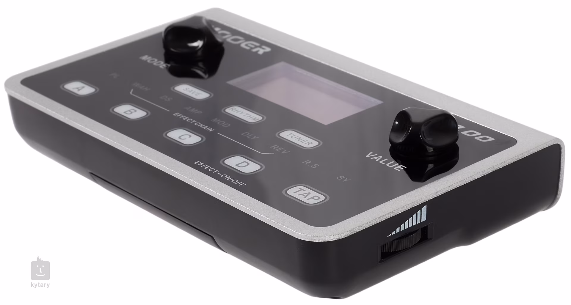 Urządzenie mieści w sobie sześć modułów efektów, obejmujących łącznie 39 efektów, w tym siedem symulacji znanych instrumentów gitarowych. Do tego dochodzi 40 rytmów perkusyjnych, 10 zintegrowanych rytmów metronomu i precyzyjny tuner. Użyj funkcji tap tempo do sterowania automatem perkusyjnym, metronomem lub efektem delay. Zintegrowany tuner jest ustawiony na 440 Hz. Abyś nie musiał za każdym razem ustawiać swoich ulubionych efektów i parametrów od zera, multi-efekt zawiera 99 ustawień fabrycznych i 99 ustawień użytkownika dla łatwego przechowywania i przywoływania ulubionych ustawień.