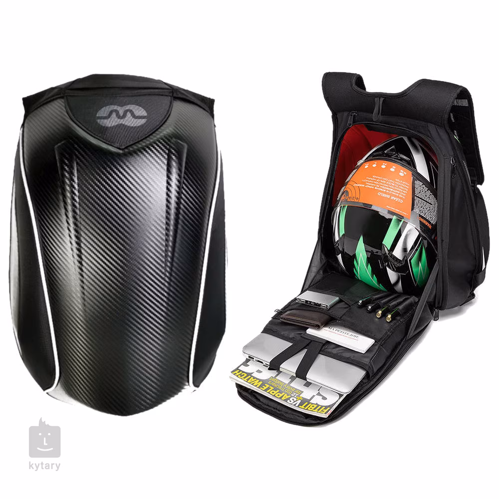 Aerodynamicznie ukształtowany plecak odpowiedni dla motocyklistów i rowerzystów z wodoodporną powierzchnią, przegrodą na laptopa do 14" i dużą przestronną kieszenią o pojemności 35/45 litrów na kask motocyklowy. Ergonomicznie ukształtowana konstrukcja idealnie dopasowuje się do pleców i bardzo skutecznie radzi sobie z podmuchami wiatru podczas szybkiej jazdy.