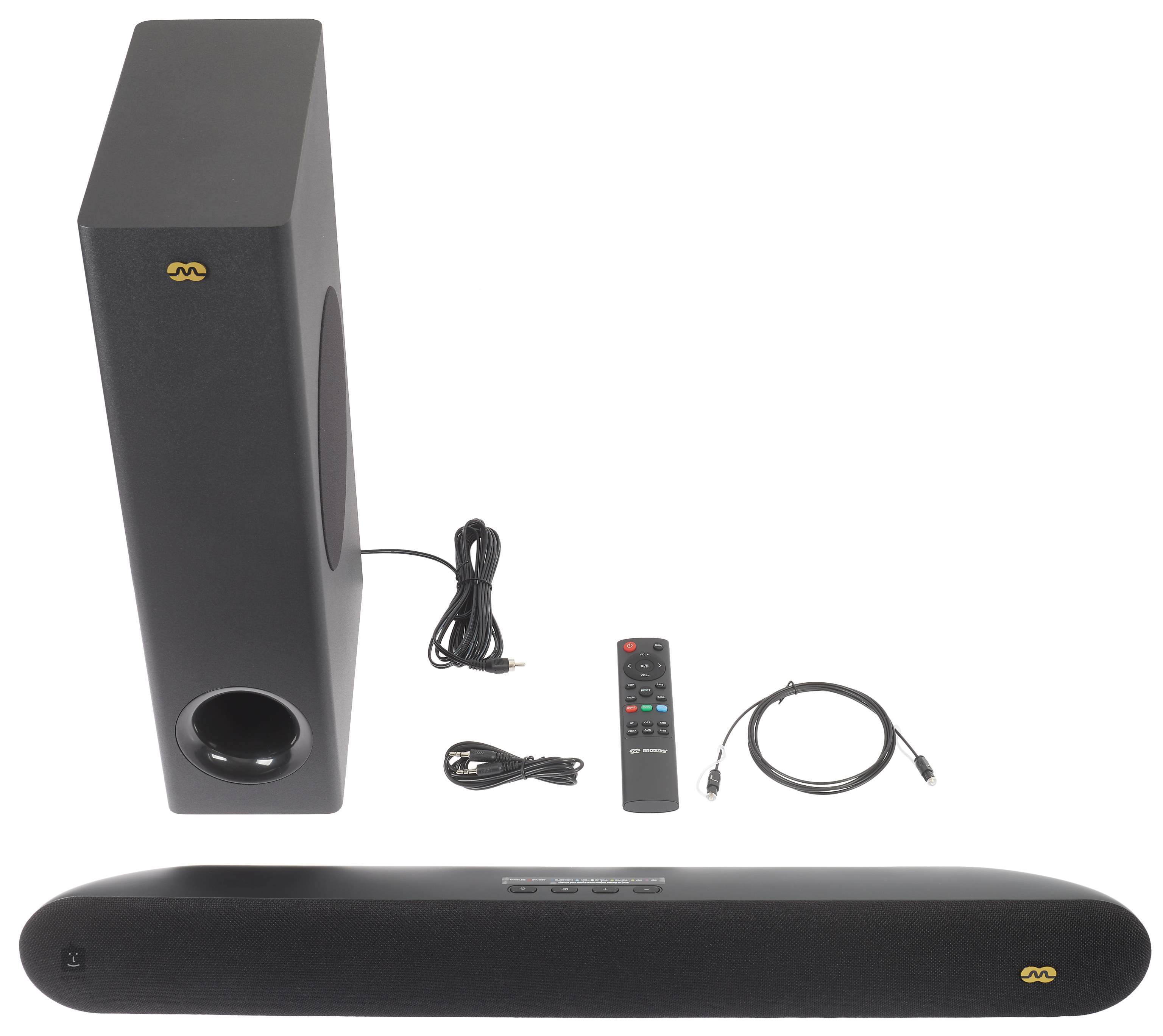 Przystępny cenowo, potężny domowy system dźwiękowy o szerokiej kompatybilności (z telewizorem, komputerem, laptopem, telefonem itp.). Soundbar posiada Bluetooth 5.0 uzupełniony o zewnętrzny subwoofer z 6,5-calową membraną, technologię Bluetooth o zasięgu do 10 metrów, port USB, wejście Aux In, wejście optyczne do podłączenia telewizora, wejście koncentryczne, HDMI ARC i pilot zdalnego sterowania z trzema modami EQ. Oprócz zewnętrznego subwoofera, w zestawie znajduje się również pilot zdalnego sterowania, zasilacz i uchwyt do montażu na ścianie wraz z niezbędnymi śrubami.