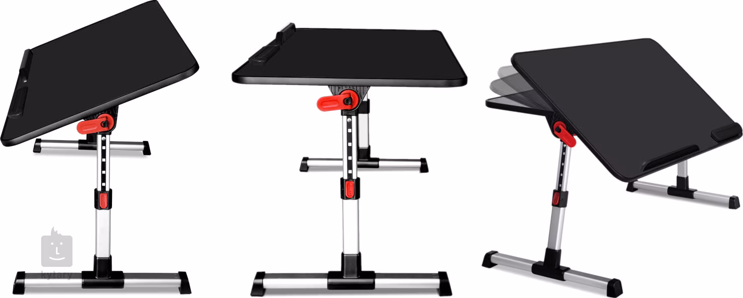 Bardzo kompaktowy stolik pod laptopa odpowiedni dla wszystkich graczy i pracowników komputerowych, którzy lubią pracować z wygodnej kanapy lub podgrzewanego łóżka. Dzięki teleskopowej i regulowanej konstrukcji zawsze będziesz mieć wyprostowaną pozycję ciała, a plecy nigdy nie będą boleć. Płyta główna wykonana jest z wytrzymałego materiału MDF i może pomieścić laptopy o przekątnej do 17 cali, a ponadto zawiera ograniczniki zapewniające maksymalne bezpieczeństwo urządzenia. Wytrzymała aluminiowa konstrukcja posiada pięciopoziomowy system regulacji wysokości.