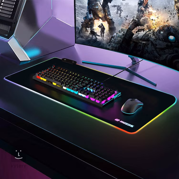 Stylowa, podświetlana podkładka gamingowa pod mysz komputerową, klawiaturę i inne urządzenia potrzebne do pracy na komputerze lub laptopie. Nadaje się do domowych studiów nagraniowych, biur, a zwłaszcza dla zapalonych graczy, którzy potrzebują maksymalnej wygody podczas grania. Mata wykonana jest z matowego, wodoodpornego materiału, a jej spód pokryty jest antypoślizgową gumą. Mata jest zasilana za pomocą kabla USB i zasilacza 5V.