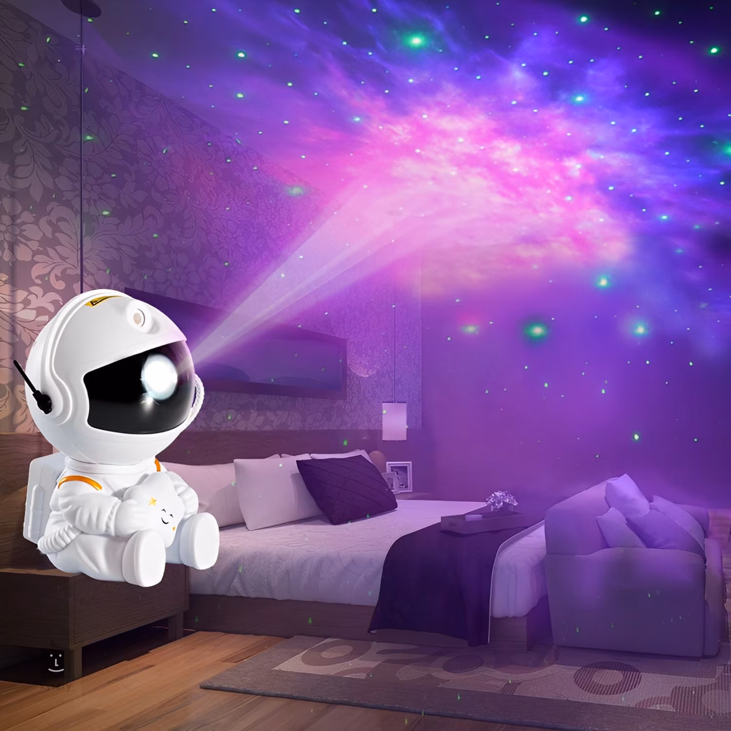 Projektor laserowy Mozos HR-F2 to wyjątkowy projektor nocnego nieba w kształcie uroczego astronauty, który z pewnością zachwyci wszystkich entuzjastów astronomii, dzieci w każdym wieku, a także miłośników oświetlenia otoczenia. Jest to kompaktowe urządzenie oświetleniowe, które wyświetli na suficie rozgwieżdżone niebo i wierną imitację gwiezdnej mgławicy. Sprawi, że poczujesz się jak w planetarium lub w przestrzeni kosmicznej. Głowa astronauty jest magnetyczna i obrotowa, dzięki czemu można łatwo dostosować kierunek oświetlenia do własnych potrzeb. Do sterowania służy bezprzewodowy kontroler lub przyciski z tyłu figurki.