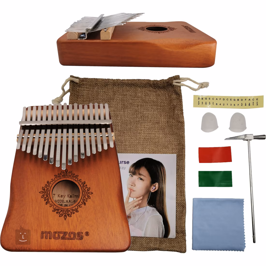 Instrument który swoim oryginalnym kształtem i brzmieniem odróżnia się od wszystkich pozostałych tego typu produktów. Wysokiej jakości drewniana skrzynia rezonansowa, wykonana z wysokogatunkowego, litego mahoniu z 17 klawiszami od polskiego producenta produktów audio. Kalimby używa się trzymając instrument w obu dłoniach, naciskając kciukami na odpowiednie klawisze. Atrakcyjne i intrygujący prezent dla dzieci i dorosłych. Odpowiednie do edukacji muzycznej dla każdej grupy wiekowej. Świetnie też sprawdza się w muzycznej terapii. W zestawie znajduje się oprócz samego instrumentu: naklejki, nakładki na palce, młoteczek do strojenia, ściereczek do czyszczenia oraz instrukcja.