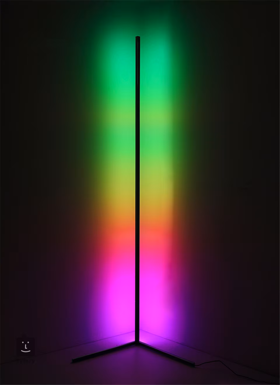 Lampa ma wysokość 140 cm i została zaprojektowana do tworzenia oświetlenia otoczenia, gdy jest umieszczona w rogu pokoju, odbijając się od ścian i oświetlając sąsiednią przestrzeń. Wyposażona jest w osiemdziesiąt cztery diody LED SMD RGB, które zapewniają wysokiej jakości oświetlenie o żywych kolorach. Całkowita moc diod LED wynosi 20 W, a ich żywotność to 25 000 godzin. Lampa wykonana jest z wytrzymałego aluminium, a dzięki nowoczesnemu designowi stanie się minimalistycznym elementem każdego wnętrza. Sterowanie odbywa się za pomocą bezprzewodowego pilota.