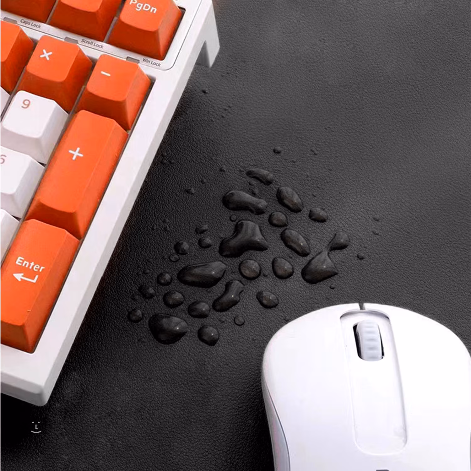 Mata wykonana jest z miękkiej i gładkiej skóry PVC, gwarantując duży obszar roboczy 120 × 60 cm przy zachowaniu najwyższej estetyki. Gładka skórzana powierzchnia jest nie tylko wodoodporna, ale także odporna na plamy. Rozlane płyny można łatwo wytrzeć, utrzymując wygląd naszego pokoju zawsze na najwyższym poziomie. Ponieważ podkładka pod klawiaturę została wykonana z ekologicznej skóry, przy jej produkcji nie ucierpiały żadne zwierzęta. Nie wymaga ona żadnej dodatkowej pielęgnacji, aby zachować jej piękny wygląd przez długi czas.
