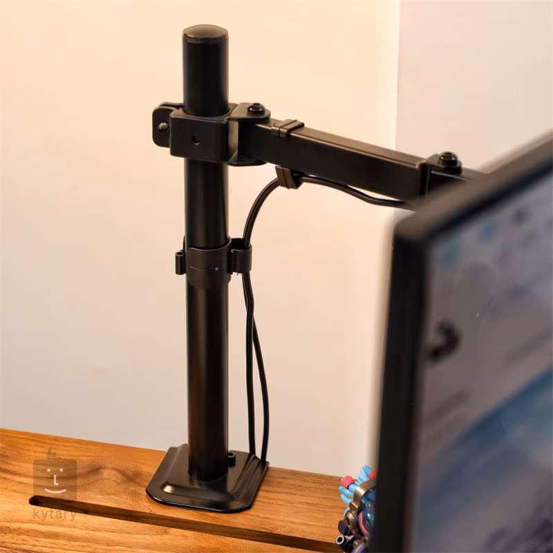 Mozos MS02 to praktyczny uchwyt do monitorów komputerowych, który można łatwo przymocować do blatu biurka. Dzięki niemu zyskujesz bardziej estetyczną przestrzeń i więcej możliwości ustawienia monitora. Stalowa konstrukcja i maksymalny udźwig 9 kg gwarantują kompatybilność z praktycznie wszystkimi dostępnymi monitorami ze standardem montażowym Vesa 100 x 100 mm i przekątnymi od 10" do 32". Funkcje pochylenia o 90°, obrotu o 360° i pivot umożliwiają zmianę orientacji panelu. Dzięki płytkom szybkiego montażu VESA można łatwo poradzić sobie z intuicyjną instalacją.