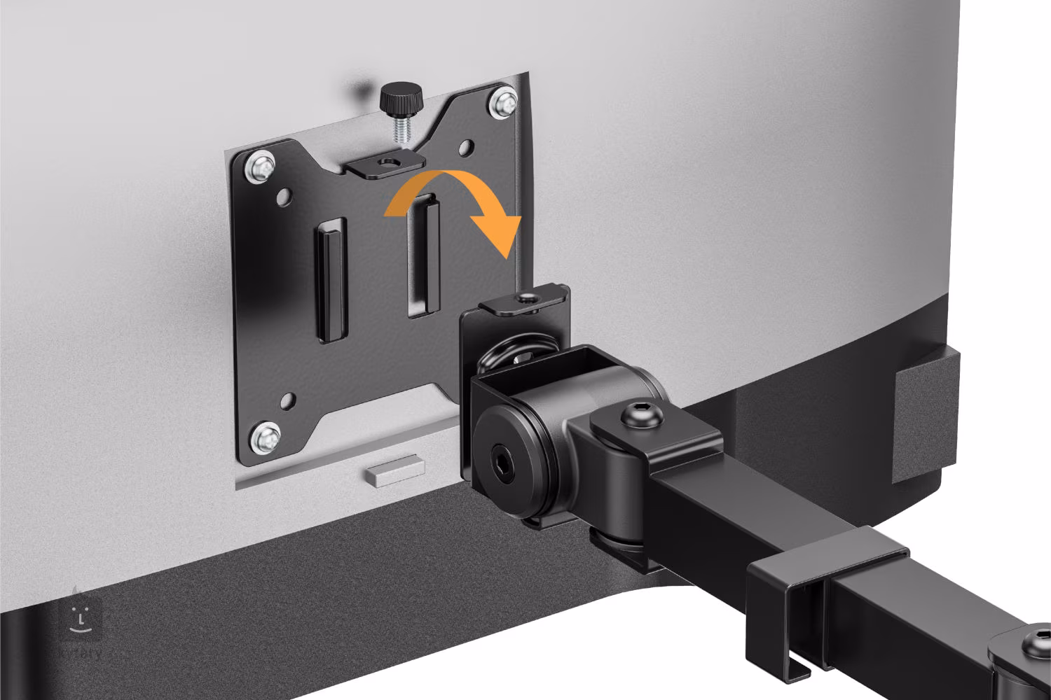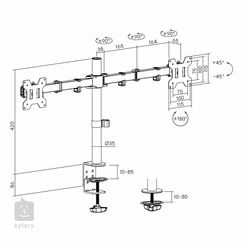Łatwość instalacji ułatwiają zdejmowane płytki VESA, które można łatwo przykręcić do monitora, a następnie umieścić na ramieniu za pomocą blokady śrubowej. Regulowany zacisk stołowy umożliwia instalację nawet na grubych blatach. Solidne metalowe elementy zapewniają wysoką stabilność i bezpieczeństwo nawet w przypadku dużych monitorów 32″.