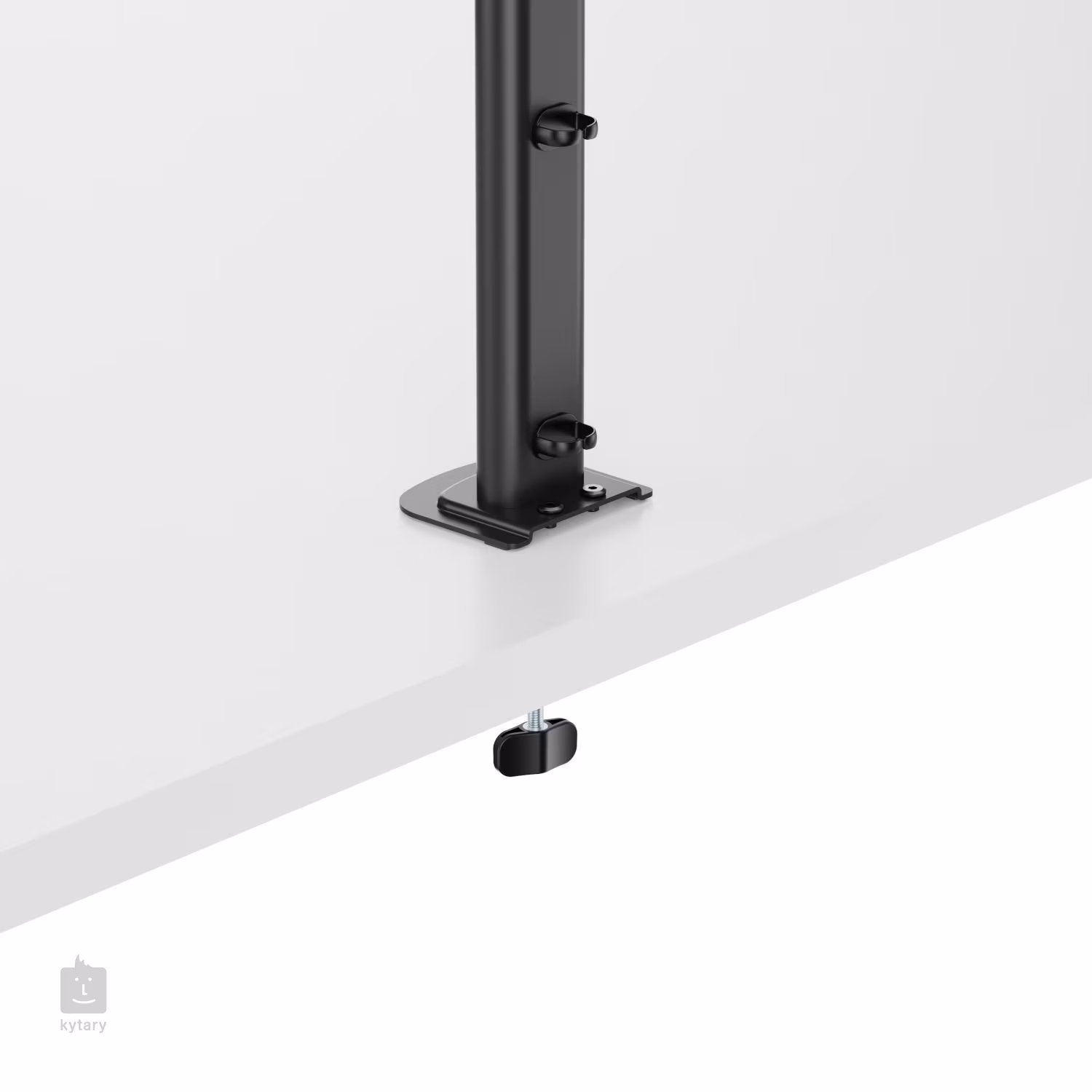 Konstrukcja wykonana jest z połączenia stali i wytrzymałego tworzywa sztucznego z powierzchnią malowaną proszkowo w eleganckim matowym czarnym kolorze. Montaż jest możliwy za pomocą zacisku stołowego (clamp) lub przelotki (grommet), przy czym obsługiwana grubość blatu wynosi 10–80 mm (clamp) lub 10–45 mm (grommet). Zintegrowany system zarządzania kablami pomaga dodatkowo utrzymać porządek i organizację w miejscu pracy.