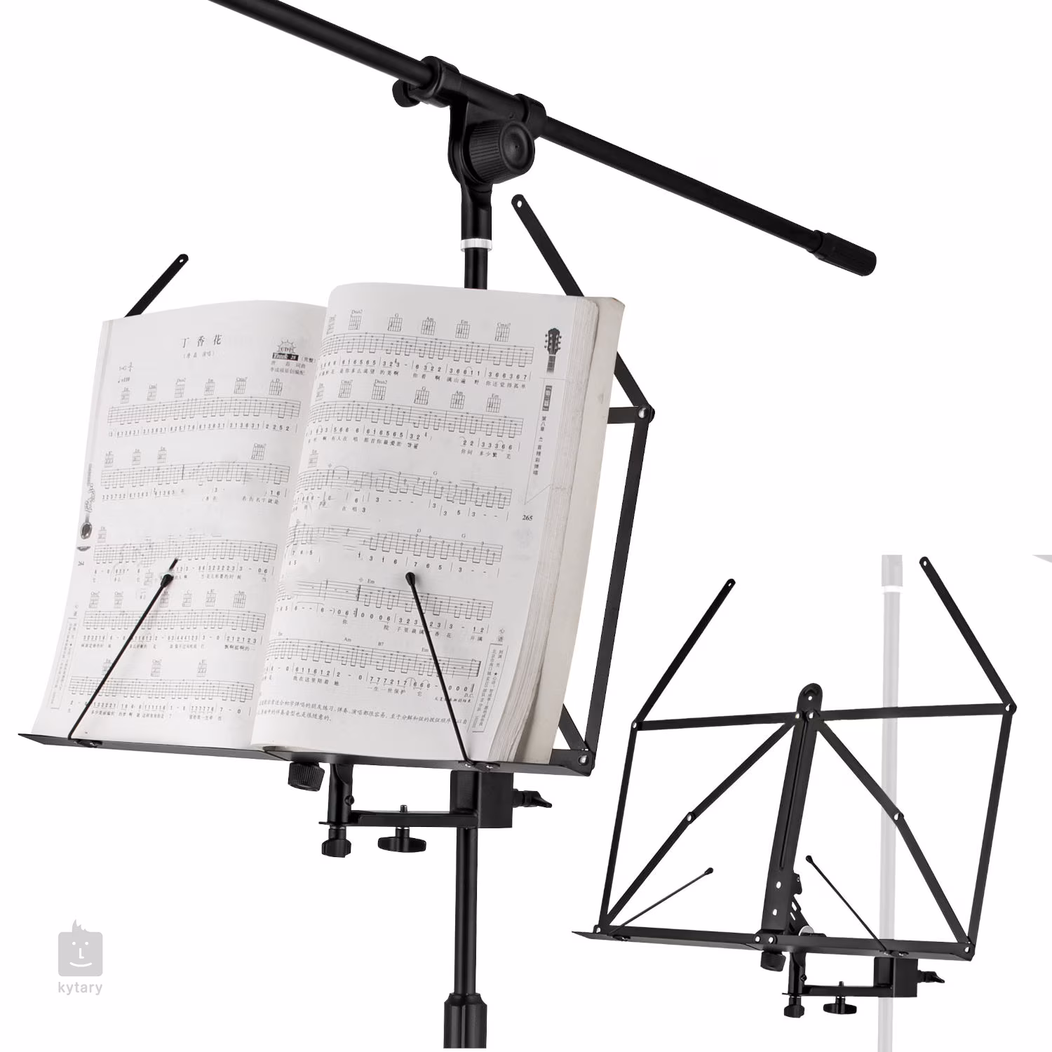 Mozos MSH1 to praktyczny metalowy statyw na nuty, który po prostu mocuje się do statywów mikrofonowych za pomocą uchwytu. Wymiary stojaka na nuty wynoszą 450 x 223 mm - oferując mnóstwo miejsca na nuty, książki, tablety i inne akcesoria. Maksymalny udźwig pulpitu z uchwytem wynosi 1,5 kg, a długość uchwytu można regulować w zakresie od 140 do 180 mm. Dzięki niewielkiej wadze wynoszącej 0,89 kg, łatwemu transportowi i szybkiej instalacji, stojak na nuty Mozos MSH1 jest nieocenionym narzędziem dla wszystkich muzyków, którzy często muszą szybko przemieszczać się między lokalizacjami.