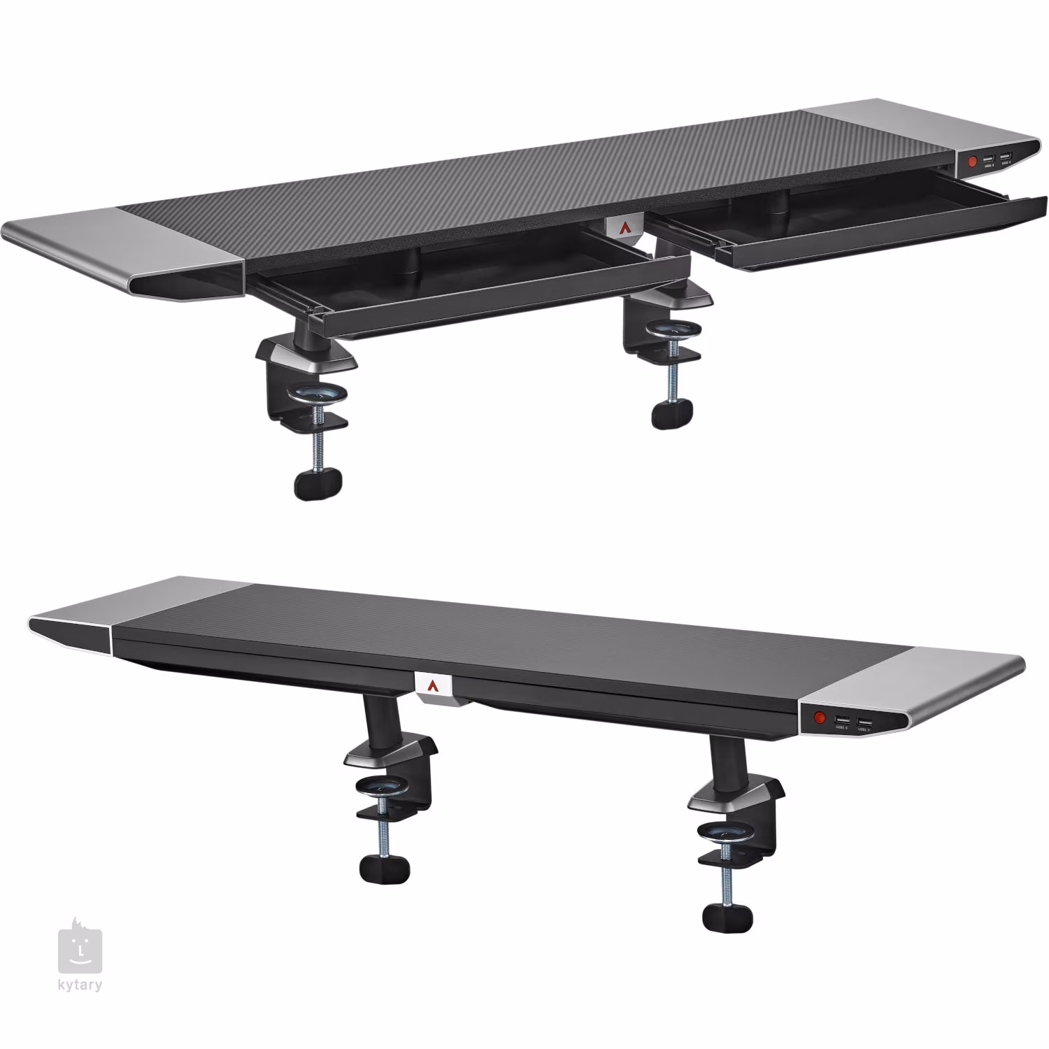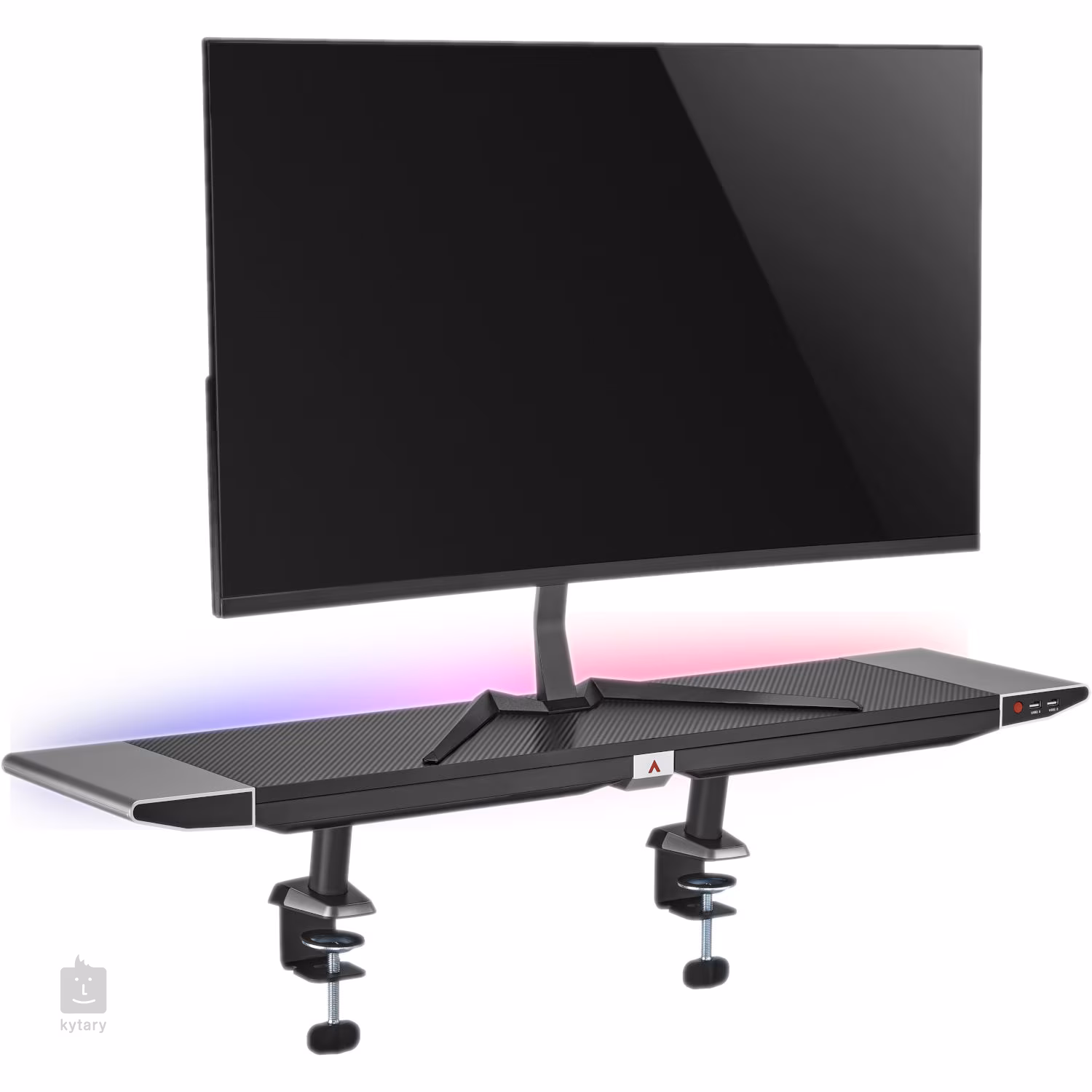Podstawka pod monitor do gier z podświetleniem RGB, udźwigiem 20 kg, szufladą na drobne akcesoria i portami USB: 2 porty USB 2.0/2 porty USB 3.0.