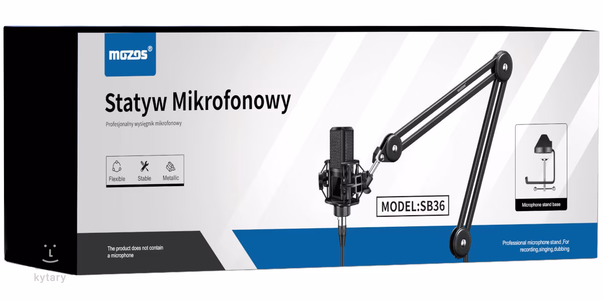 Wysokiej klasy biurkowy statyw mikrofonowy odpowiedni do prowadzenia audycji radiowych na żywo, nagrywania dubbingu lub tworzenia oryginalnych filmów na swój kanał YouTube. Na statywie mikrofonowym można umieścić wszystkie rodzaje mikrofonów, wytrzymałe metalowe ramię może utrzymać ciężar do 1,2 kg, a ponadto można je bez problemu obracać o 360°. Lekka i wytrzymała konstrukcja pozwala na łatwe przechowywanie lub przenoszenie statywu w dowolne miejsce w Twoim domowym studio. Dzięki antypoślizgowemu zaciskowi można umieścić uchwyt na stole o grubości do 60 mm o gładkiej lub błyszczącej powierzchni. W zestawie znajduje się reduktor gwintowany oraz sześć pasków na rzepy, które zapewniają doskonałe prowadzenie kabli.