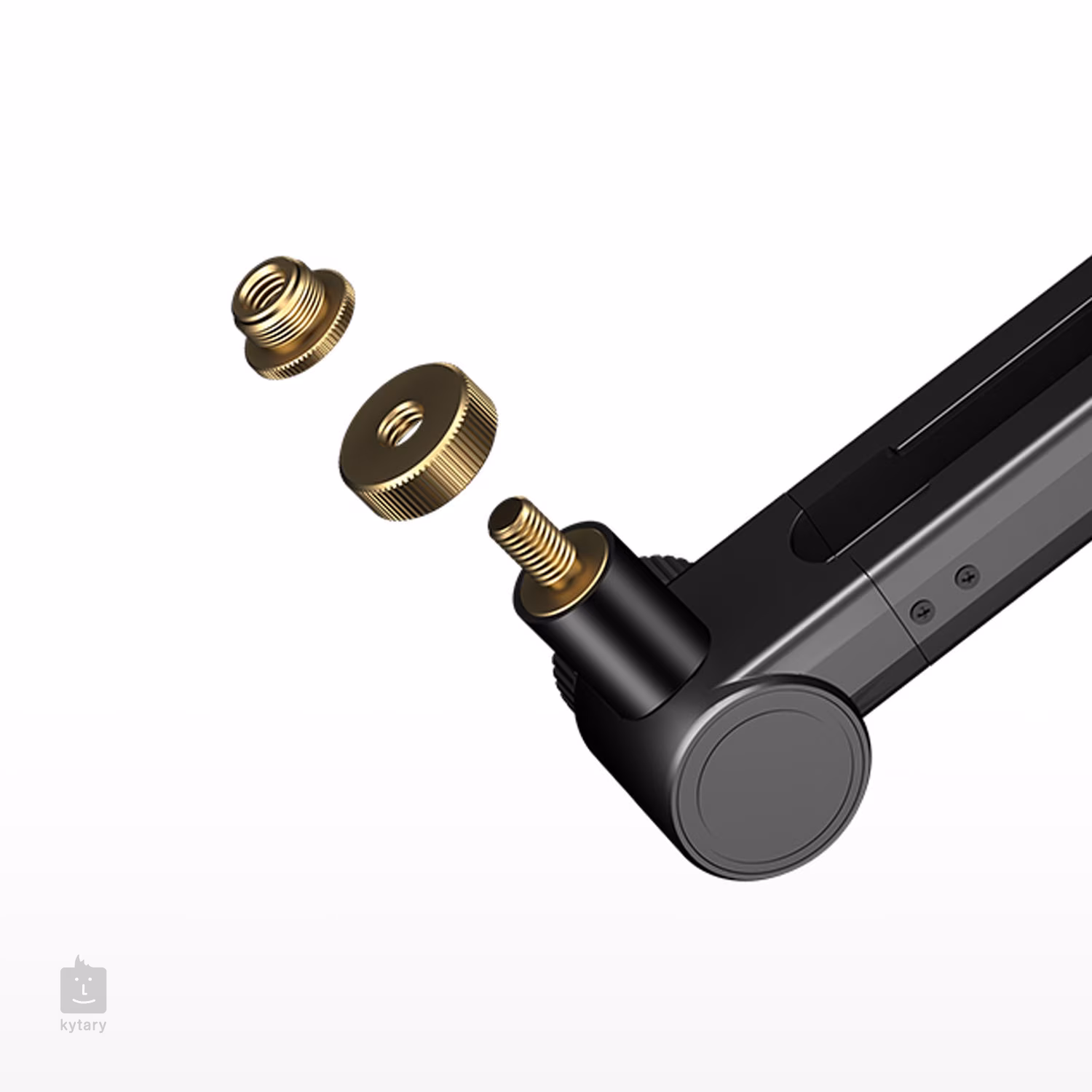 Ramię zapewnia szeroką kompatybilność z wieloma mikrofonami. Nie ma znaczenia, czy masz podstawowy mikrofon, czy profesjonalny mikrofon studyjny. Kompatybilność z oboma standardowymi gwintami zapewnia szybką i łatwą instalację. Silikonowe podkładki zaciskowe chronią stół przed zarysowaniami i minimalizują wibracje przenoszone ze stołu.
