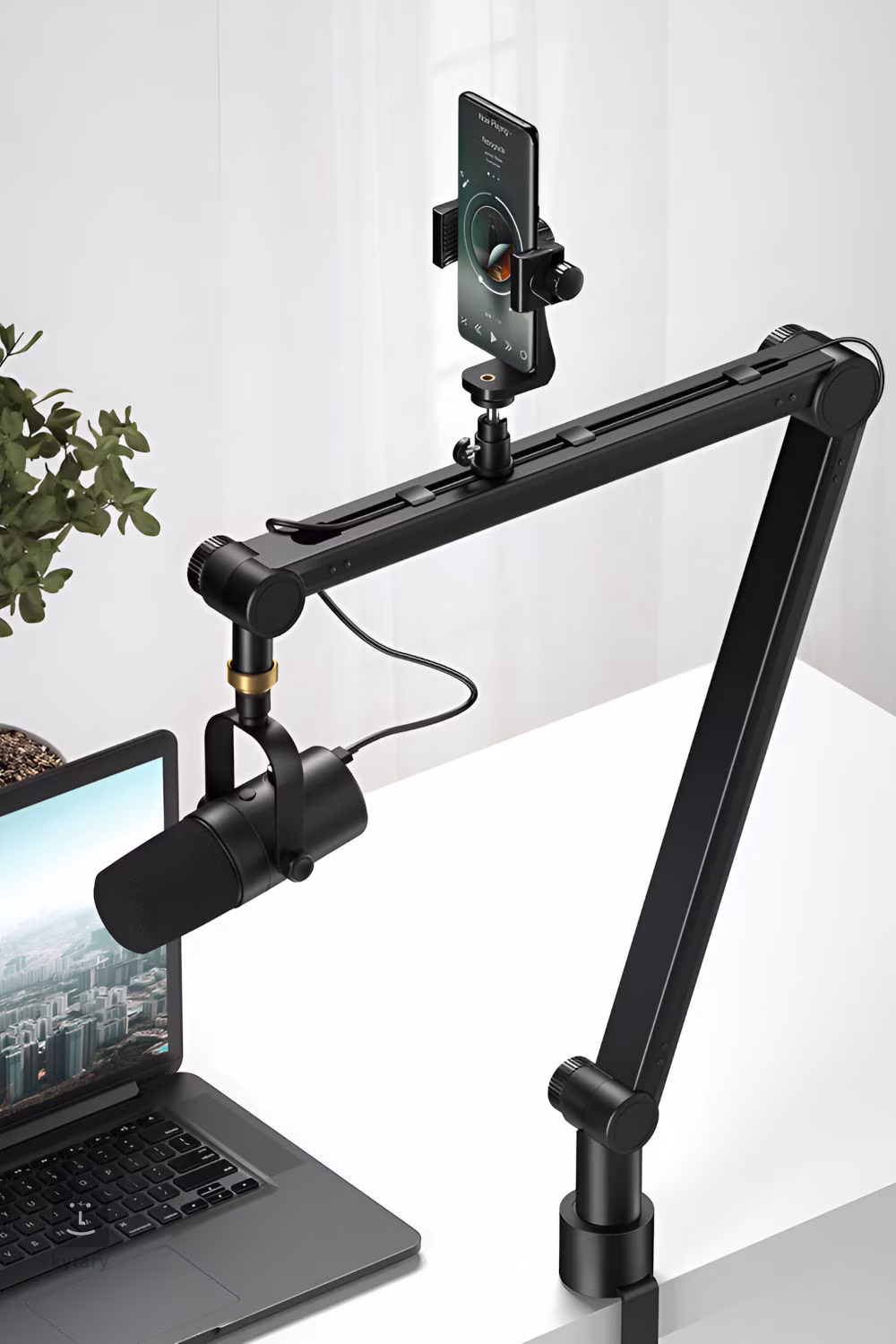 Mozos SB43 to wysokiej jakości i praktyczne ramię mikrofonowe, które oprócz doskonałej nośności i stabilności aluminiowej konstrukcji, oferuje również praktyczny uchwyt na telefon i organizer kabli.