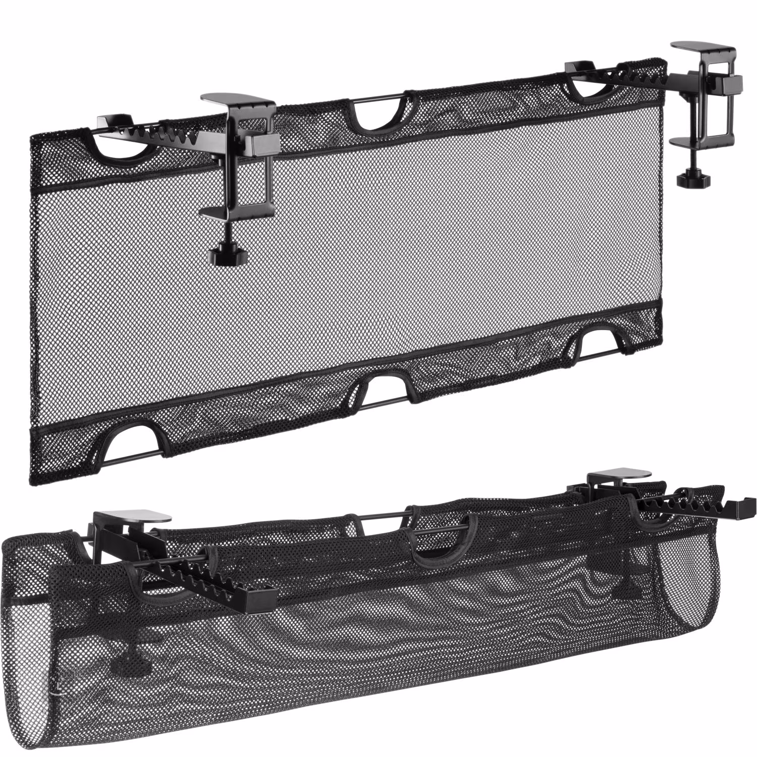 Mozos UCM-1 to praktyczny organizer na kable pod biurkiem, zaprojektowany z myślą o utrzymaniu porządku i bezpieczeństwa w miejscu pracy. Dzięki lekkiej, ale wytrzymałej konstrukcji z siatki poliestrowej z metalowym haczykiem i zatrzaskowym mechanizmem nie ma potrzeby wiercenia w blacie biurka – wystarczy przymocować go do krawędzi o maksymalnej grubości 7 cm. Prosty montaż umożliwia szybkie zakładanie i zdejmowanie, dzięki czemu nadaje się do różnych typów biurek, w tym biurek regulowanych do pracy na stojąco i siedząco.
