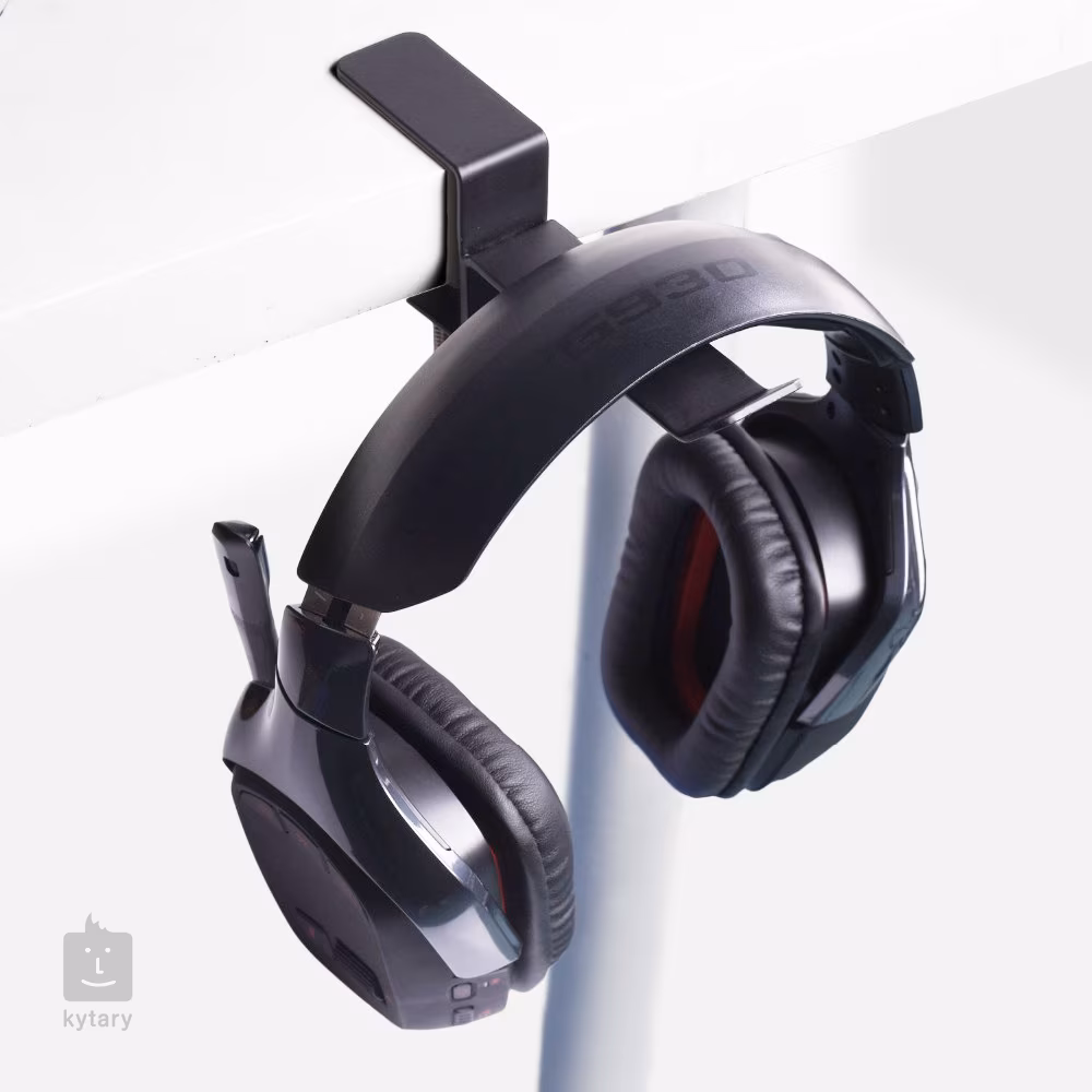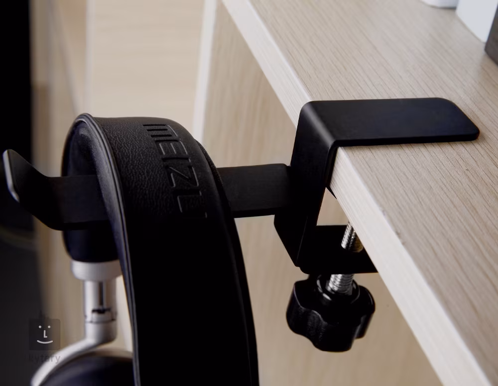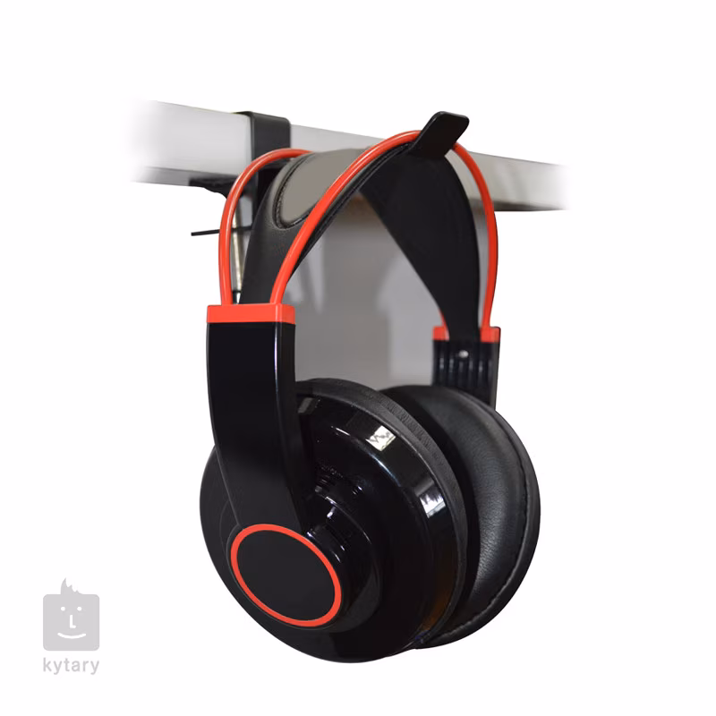Solidny stalowy uchwyt na słuchawki. Dzięki antypoślizgowemu zaciskowi można postawić uchwyt na gładkiej lub błyszczącej powierzchni.