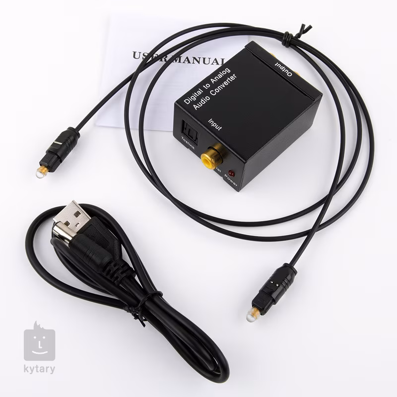 Wysokiej jakości konwerter sygnału cyfrowego (Toslink/SPDIF) na analogowy, odpowiedni do zastosowań profesjonalnych i prywatnych. Konwerter umożliwia sparowanie telewizora, konsoli do gier lub odtwarzacza DVD ze wzmacniaczem lub aktywnym głośnikiem. W zestawie znajduje się kabel optyczny i kabel zasilający z USB. Do zasilania można użyć dowolnego zasilacza 5V DC.