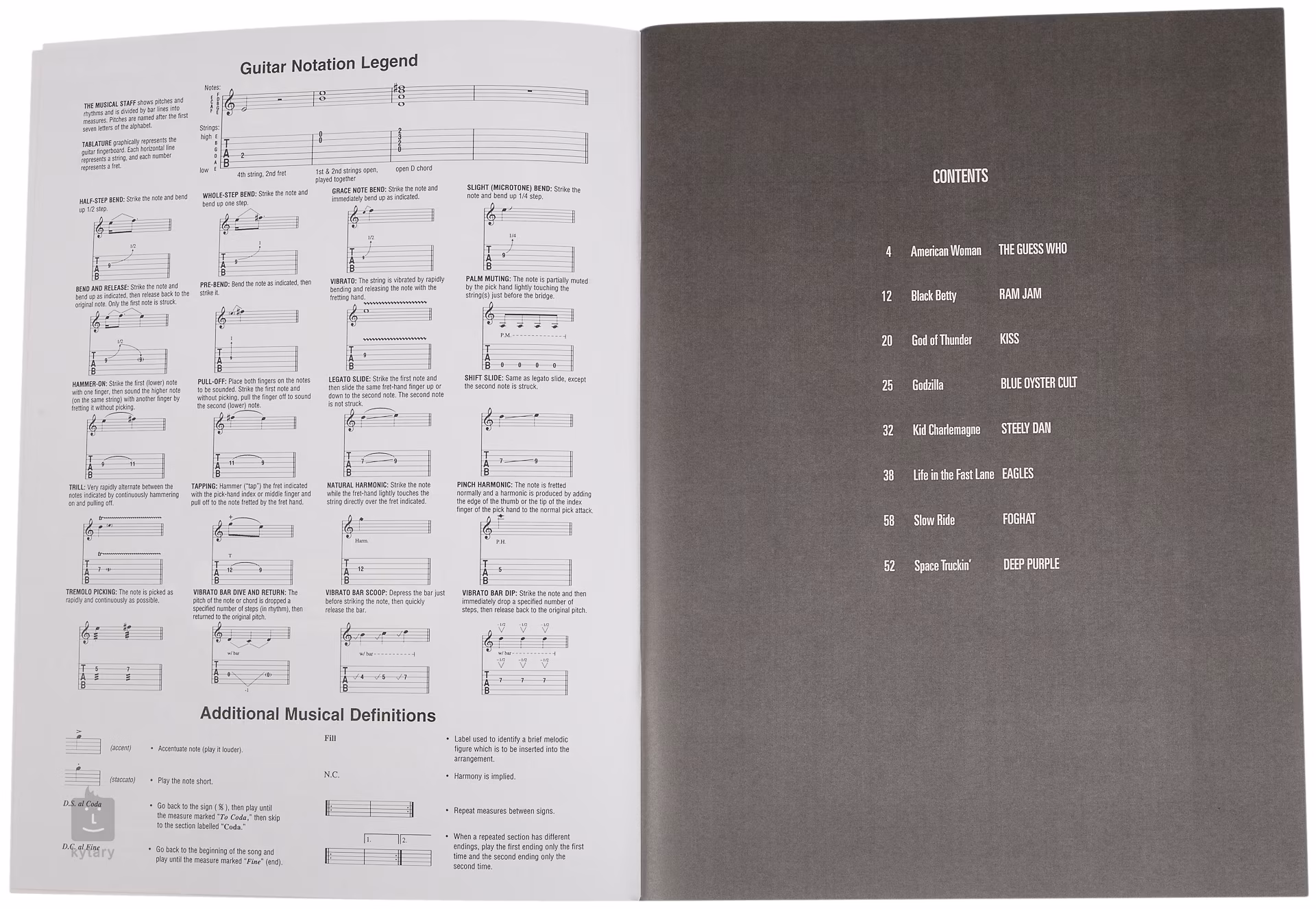 Audio w postaci nagranych partii gitarowych i podkładów muzycznych można pobrać lub pobrać ze strony internetowej Hall Leonard (unikalny kod dostępu znajduje się w publikacji). Dodatkowo, wielofunkcyjny odtwarzacz audio Playback+ umożliwia zwolnienie tempa odtwarzania utworu bez zmiany strojenia.