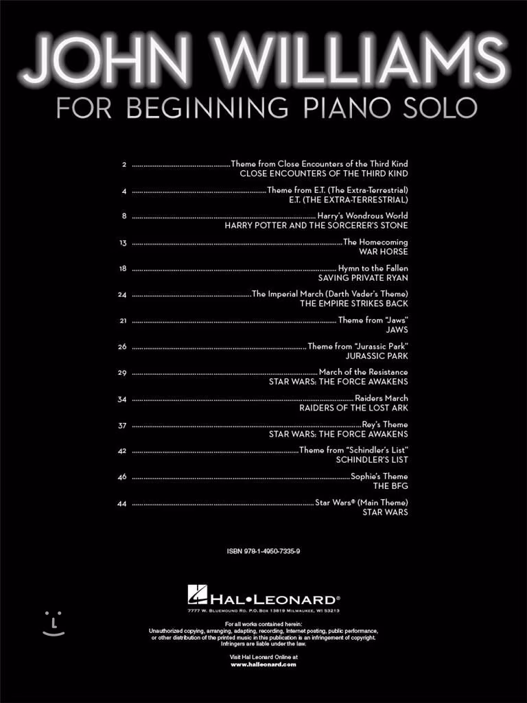 Wybór słynnych melodii filmowych amerykańskiego kompozytora Johna Williamsa w lekkich aranżacjach na fortepian, z którymi powinni poradzić sobie nawet początkujący pianiści.
