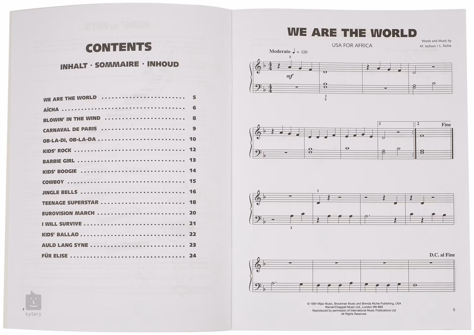 Czy chciałbyś grać znane przeboje współczesnej muzyki popularnej lub znane utwory klasyczne na pianinie lub keyboardzie, ale masz mało czasu na naukę? W takim razie Kids' Top Hits jest dla Ciebie. Przeboje takie jak We are the World, Ob-la-di,Ob-la-da, Barbie Girl, I Will Survive, Auld Lang Syne, Für Elise i wiele innych zostaną zagrane zanim się zorientujesz i z pewnością zaimponują Twoim znajomym. Ta książka jest odpowiednia jako uzupełnienie podręczników.