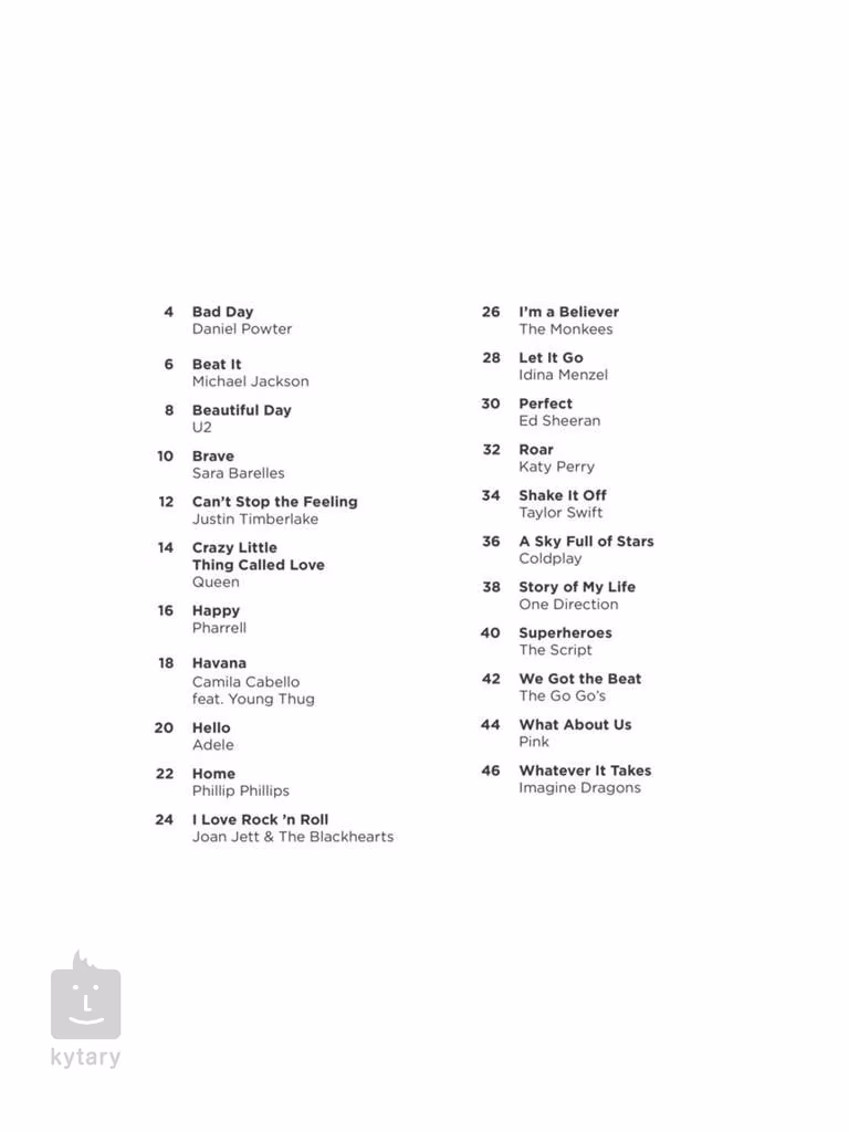Lista utworów: 1. 2. Whatever It Takes 3. Happy 4. Perfect 5. Cześć 6. Havana 7. historia mojego życia 8. Let it Go 9. Bad Day 10. Beautiful Day 11. Beat It 12. Brave 13. Shake It Off 14. szalona mała rzecz zwana miłością 15. What About Us 16. Roar 17. Niebo pełne gwiazd 18. Superheroes 19. Can't Stop The Feeling! 20. I Love Rock 'N Roll 21. I'm A Believer 22. We Got The Beat