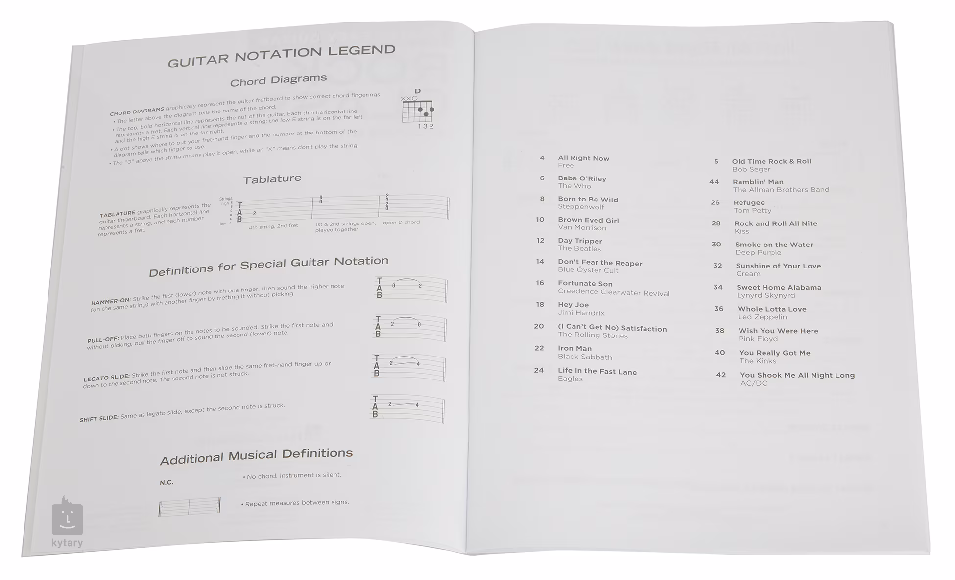 Książka Rock Classics z serii Hal Leonard Really Easy Guitar oferuje 22 słynne rockowe hity na 48 stronach, napisane w tablaturze gitarowej z akompaniamentem akordów i tekstem.