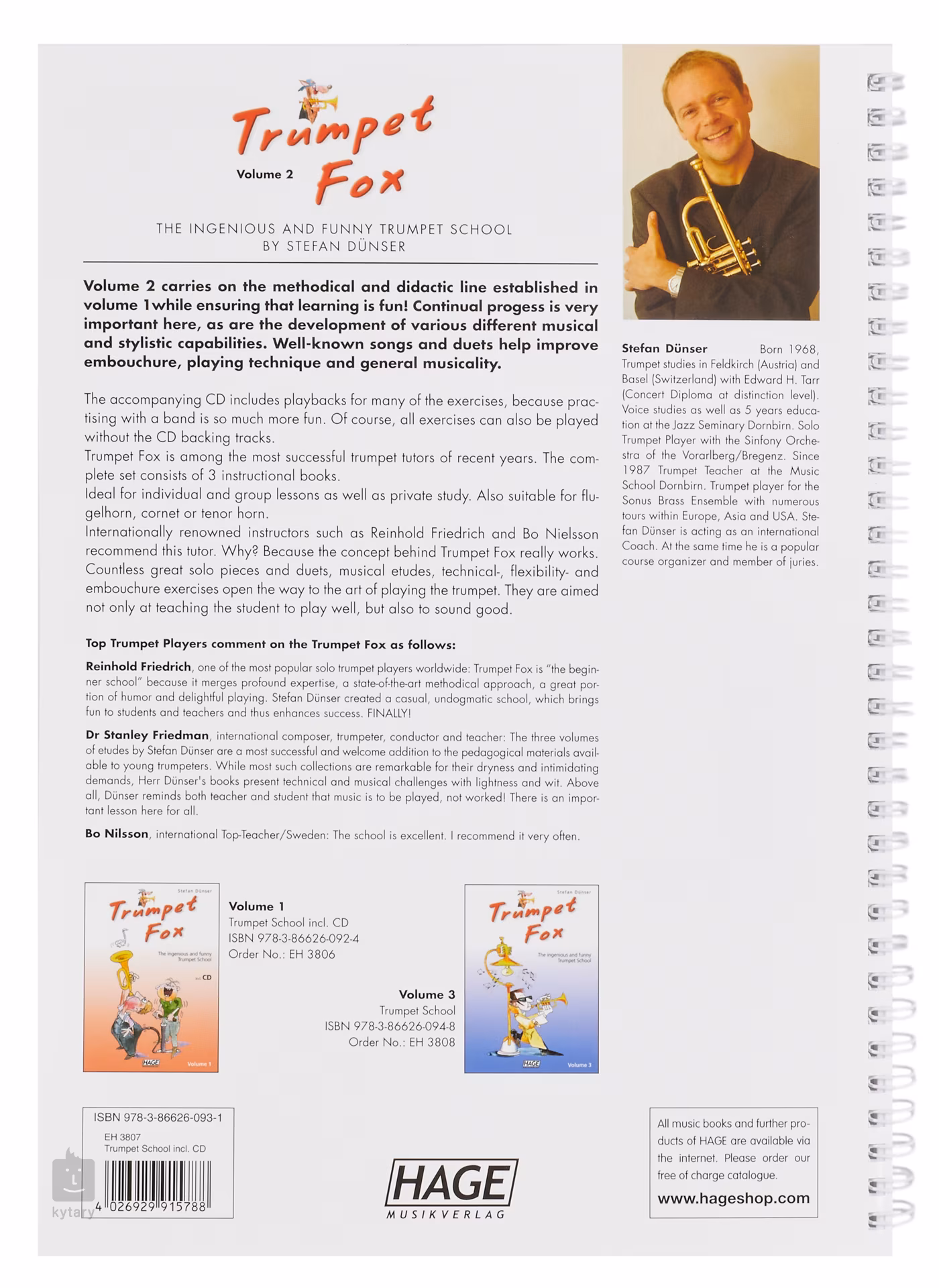Trumpet Fox to trzytomowa seria podręczników do nauki gry na trąbce, przeznaczona dla uczniów indywidualnych, szkół muzycznych oraz samouków. Książka oferuje szeroki wybór utworów na instrument solo i w duecie, a także etiudy muzyczne i ćwiczenia do ćwiczenia techniki gry i dotyku. Rozsądna dawka humoru jest integralną częścią książek o Lisie Trąbalskim, ponieważ gra na instrumencie muzycznym, czy to dla dorosłych, czy dla dzieci, powinna być przede wszystkim zabawą. Dołączona płyta CD z nagraniami do wielu ćwiczeń.