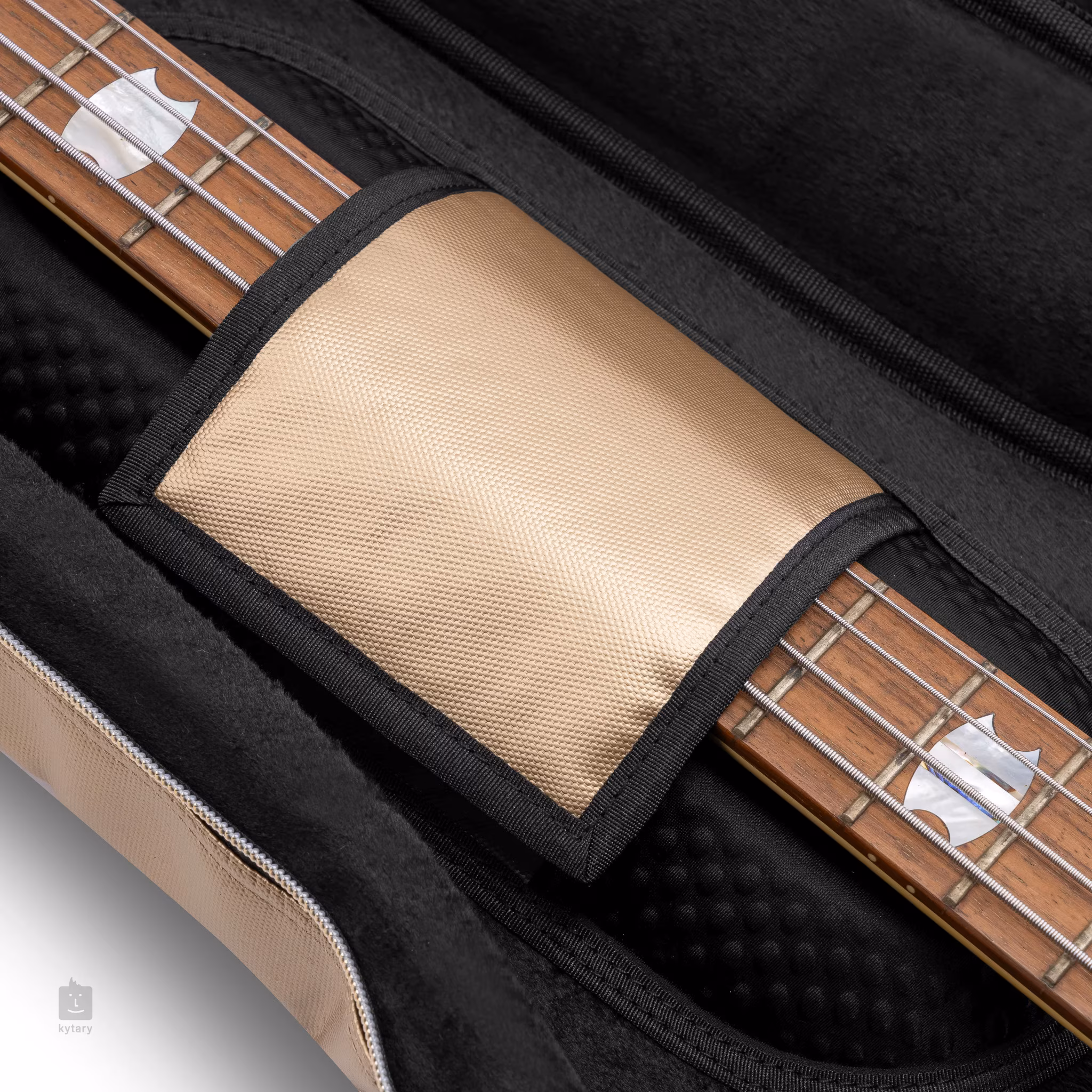 Pokrowce marki Music Area z serii FDA ochronią Twój instrument przed wszystkimi niebezpieczeństwami, które czają się za drzwiami Twojego pokoju. Ten model jest przeznaczony do elektrycznych gitar basowych. Wytrzymały, wodoodporny poliester zapewnia ochronę przed deszczem i wilgocią, a gruba, 25-milimetrowa wyściółka oraz polipropylenowe wzmocnienie tylnej ścianki gwarantują podstawowe bezpieczeństwo w razie nieoczekiwanych upadków i uderzeń. Wnętrze futerału wyłożone jest miękką, pluszową podszewką, która jest maksymalnie delikatna dla drewna i lakieru Twojego instrumentu. W miejscu szyjki znajduje się miękka, precyzyjnie ukształtowana wnęka z rzepem, która doskonale unieruchamia szyjkę basu, zapobiegając jego przemieszczaniu się w futerale. Dodatkowa wyściółka o grubości 15 mm zapewnia ochronę newralgicznych miejsc, takich jak główka i dolna część korpusu.