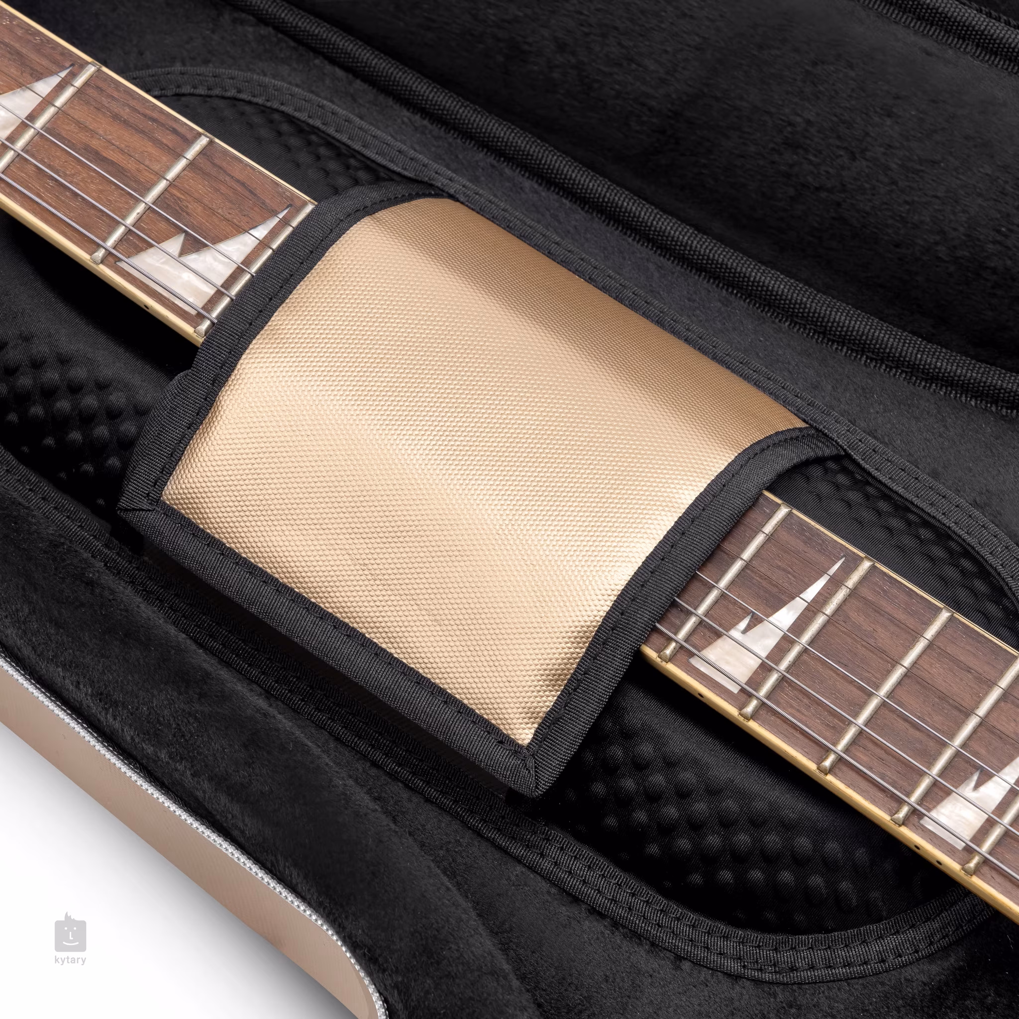 Futerały Music Area z serii FDA chronią instrument przed wszystkimi pułapkami, które czają się za drzwiami sypialni. Podczas gdy wytrzymały, wodoodporny poliester zapewni ochronę przed deszczem i wilgocią, gruba 25 mm wyściółka i polipropylenowe wzmocnienie pleców zapewnią niezbędne bezpieczeństwo podczas nieoczekiwanych upadków i uderzeń. Wnętrze futerału jest wyłożone miękką pluszową podszewką, która jest tak delikatna, jak to tylko możliwe dla drewna i lakieru instrumentu. Na szyjce znajduje się miękka, reprezentacyjnie ukształtowana kołyska z zapięciem na rzep, która doskonale zakotwicza szyjkę gitary, aby nie latała w futerale. Dodatkowe 15 mm wyściółki chroni zagrożone obszary, takie jak główka i dolna część korpusu.