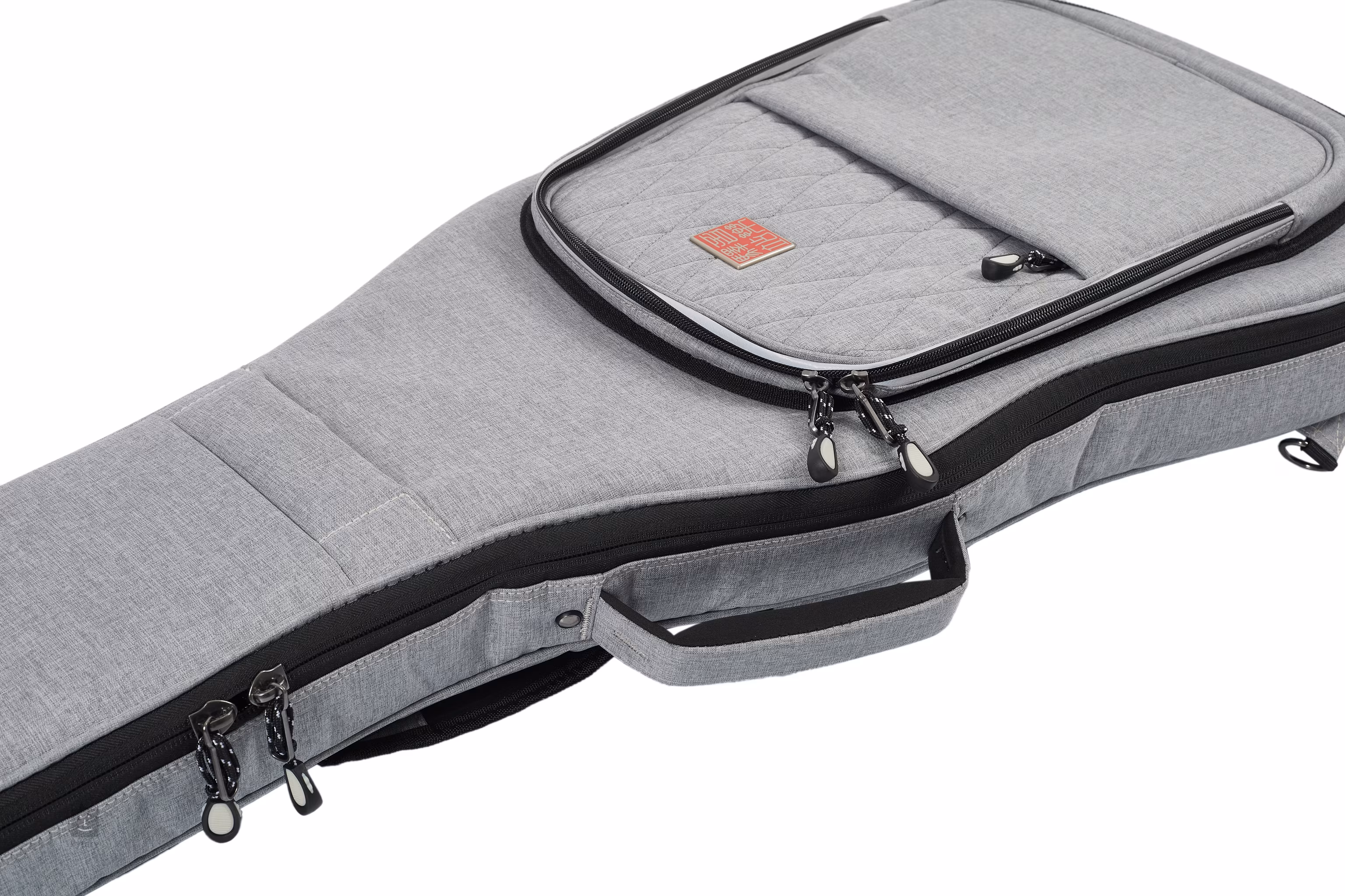 Te luksusowe futerały z serii TANG30 wyposażone są w wyjątkowo sztywną wyściółkę o grubości do 30 mm, wykonaną z laminowanej pianki EPE i poliuretanu, która jest niezwykle lekka i niezawodnie chroni instrument przed uderzeniami. Zewnętrzna strona jest wykonana z wodoodpornego i wytrzymałego poliestru 900D, który jest odporny na rozdarcia, podczas gdy wewnętrzna strona jest pokryta grubą warstwą miękkiej tkaniny i ma wodoodporne wykończenie. Od spodu znajduje się wzmocnienie z wytrzymałego PVC, które chroni nie tylko narzędzie, ale także sam futerał przed zużyciem. Model ten posiada również wyjmowaną wyściółkę ochronną na rolkę paska oraz wzmocnioną, regulowaną podpórkę na szyję z systemem zapinania. Z pewnością nie musisz martwić się o jakość zamków błyskawicznych, ponieważ są one regularnie testowane przez producenta i mogą z łatwością obsłużyć ponad 8 000 rozpięć i zamków.