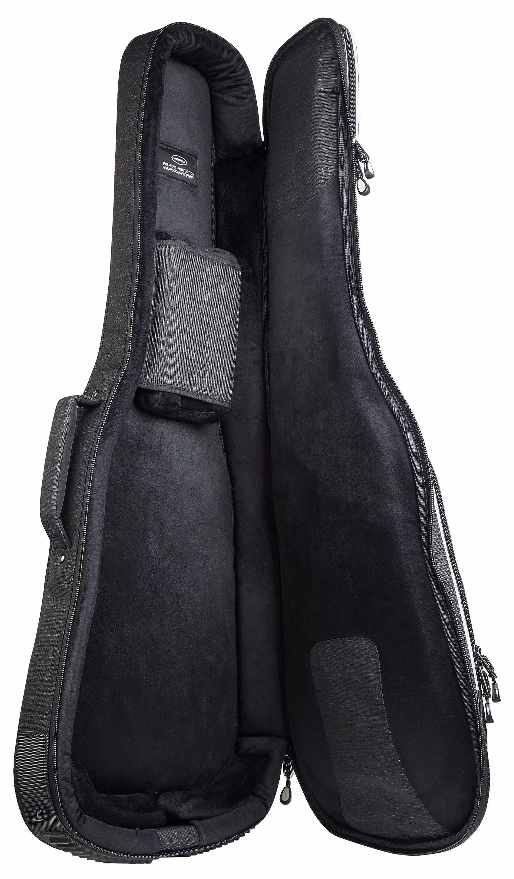 Te luksusowe futerały z serii TANG30 wyposażone są w wyjątkowo sztywną wyściółkę o grubości do 30 mm, wykonaną z laminowanej pianki EPE i poliuretanu, która jest niezwykle lekka i niezawodnie chroni instrument przed uderzeniami. Zewnętrzna strona jest wykonana z wodoodpornego i wytrzymałego poliestru 900D, który jest odporny na rozdarcia, podczas gdy wewnętrzna strona jest pokryta grubą warstwą miękkiej tkaniny i ma wodoodporne wykończenie. Od spodu znajduje się wzmocnienie z wytrzymałego PVC, które chroni nie tylko narzędzie, ale także sam futerał przed zużyciem. Model ten posiada również wyjmowaną wyściółkę ochronną na rolkę paska oraz wzmocnioną, regulowaną podpórkę na szyję z systemem zapinania. Z pewnością nie musisz martwić się o jakość zamków błyskawicznych, ponieważ są one regularnie testowane przez producenta i mogą z łatwością obsłużyć ponad 8 000 rozpięć i zamków.