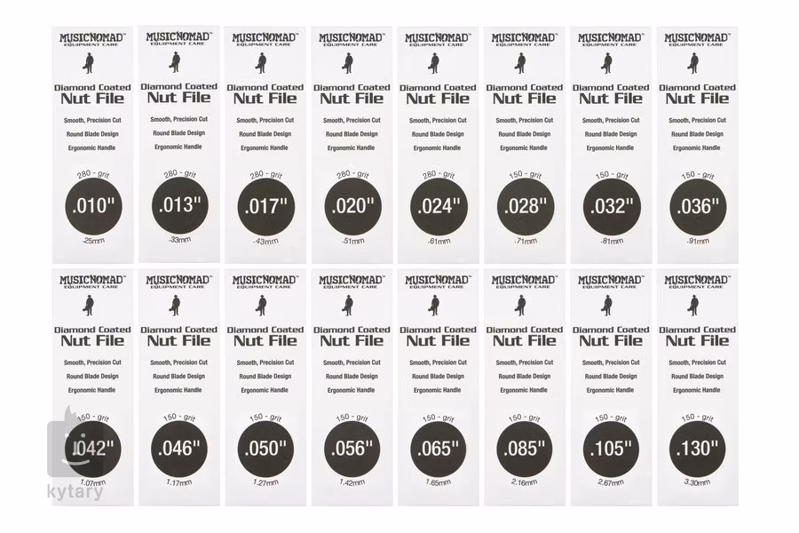 Ten szesnastoczęściowy zestaw zawiera wszystkie pilniki, których będziesz potrzebował do obróbki gitary akustycznej i elektrycznej lub basów. W zestawie znajdują się pilniki o grubości .010", .013", .017", .020", .024", .028", .032", .036", .042", .046", .050", .056", .065", .085", .105" i .130".
