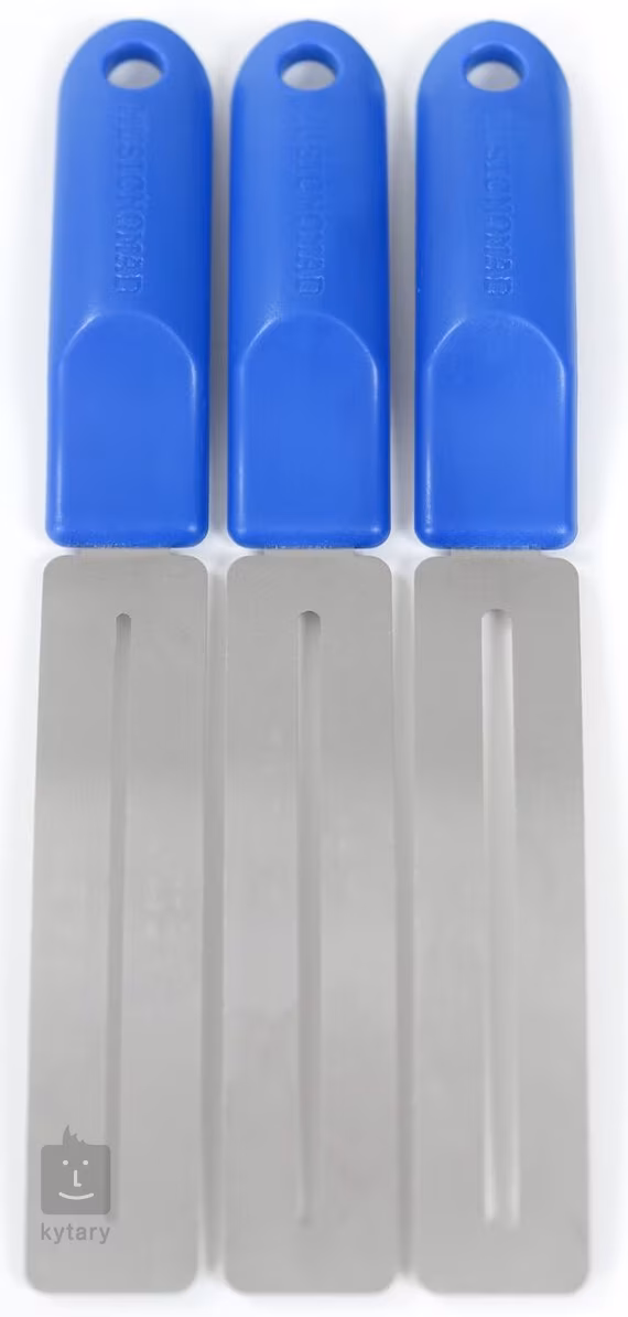 Zestaw GRIP Fretboard Guards w trzech rozmiarach (Small, Medium, Jumbo) zapobiega kontaktowi środków czyszczących lub narzędzi z podstrunnicą gitary i ułatwia perfekcyjne czyszczenie lub szlifowanie progów. Osłony wykonane są ze stali nierdzewnej z plastikowymi, ergonomicznymi uchwytami.