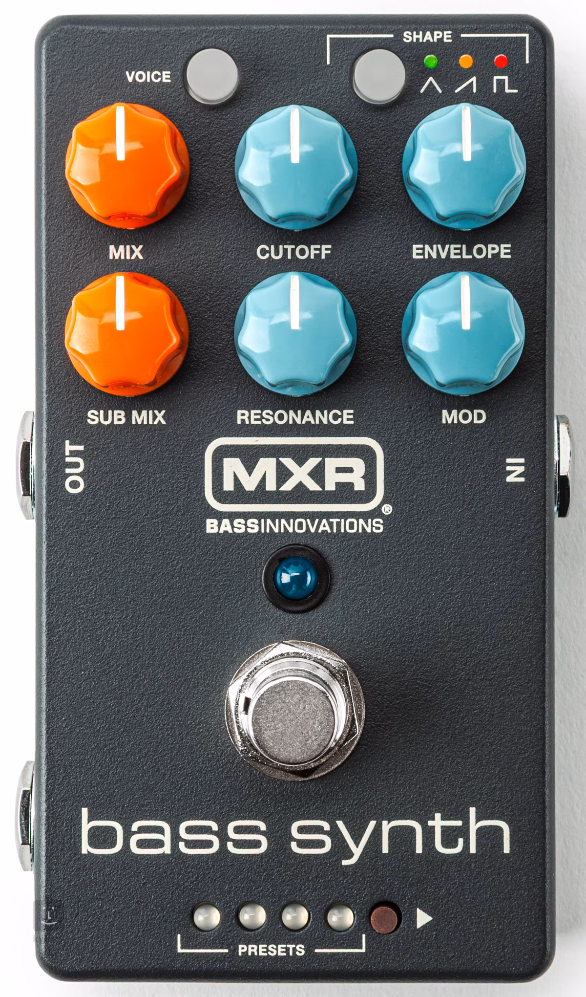 Panel sterowania jest wyposażony w sześć podstawowych elementów sterujących, które umożliwiają regulację parametrów obwiedni, odcięcia, modulacji lub rezonansu. Ponadto każdy z potencjometrów ma ukryte alternatywne funkcje do ustawiania drugorzędnych parametrów. Pokrętło Mix reguluje stosunek sygnału suchego do mokrego, podczas gdy Sub Mix pozwala kontrolować stosunek między głównym syntezatorem a linią sub-oktawową. Użyj pokrętła Shape, aby łatwo wybrać preferowany kształt fali dźwiękowej, a pokrętła Voice, aby dodać dodatkowy oscylator w celu zwiększenia złożoności ogólnego brzmienia. W dolnej części panelu sterowania znajduje się przycisk do przełączania między ośmioma zapisanymi ustawieniami wstępnymi.