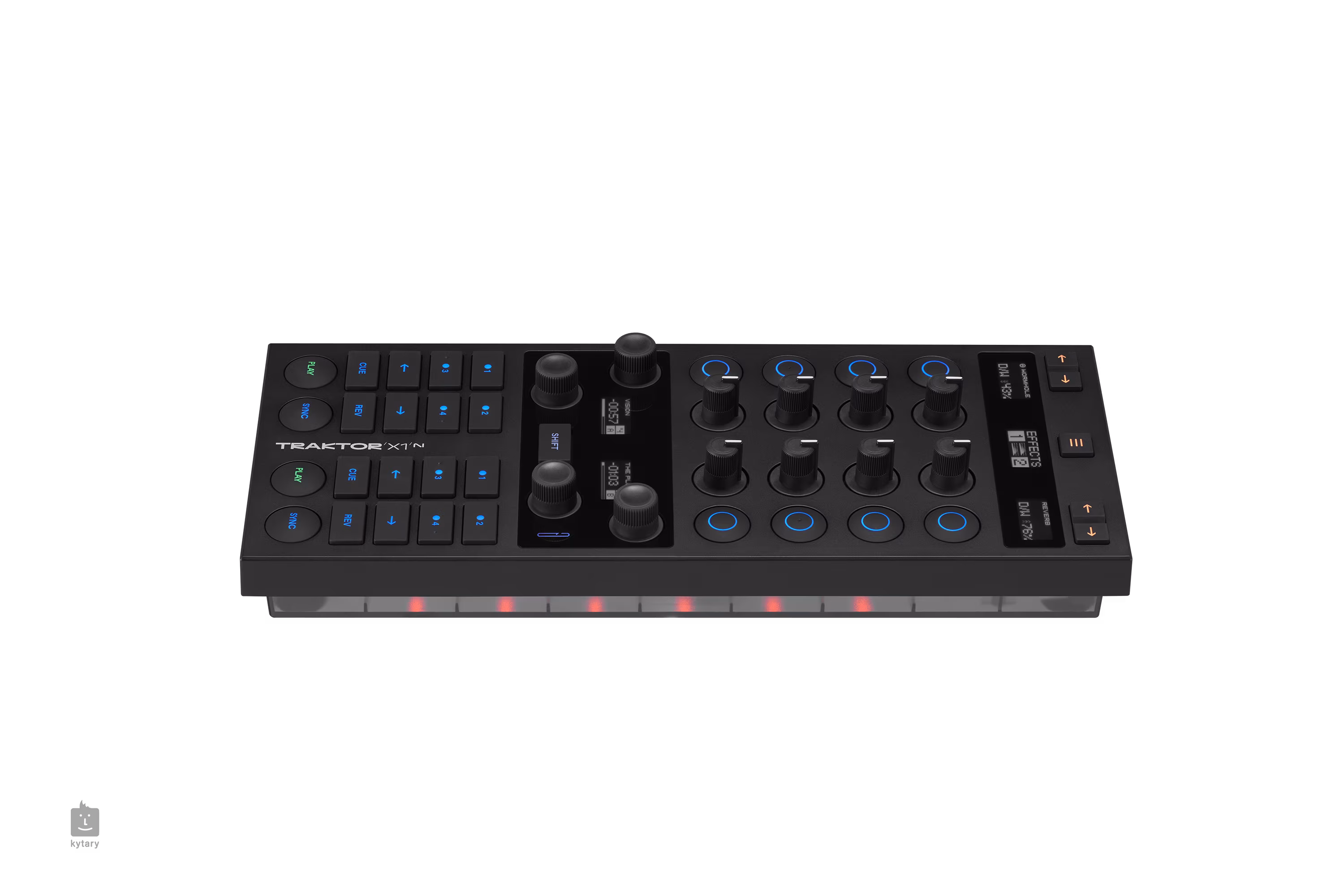 Traktor X1 Mk3 jest wyposażony w szereg czułych na dotyk przycisków i pokręteł, które zapewniają szybki dostęp do kluczowych funkcji, takich jak punkty cue, pętle i efekty. Pokrętła i paski dotykowe zapewniają precyzyjną kontrolę nad ścieżkami, umożliwiając doskonałe miksowanie i skreczowanie. Ponadto kontroler ten jest podświetlany, co ułatwia pracę w ciemnych klubach.