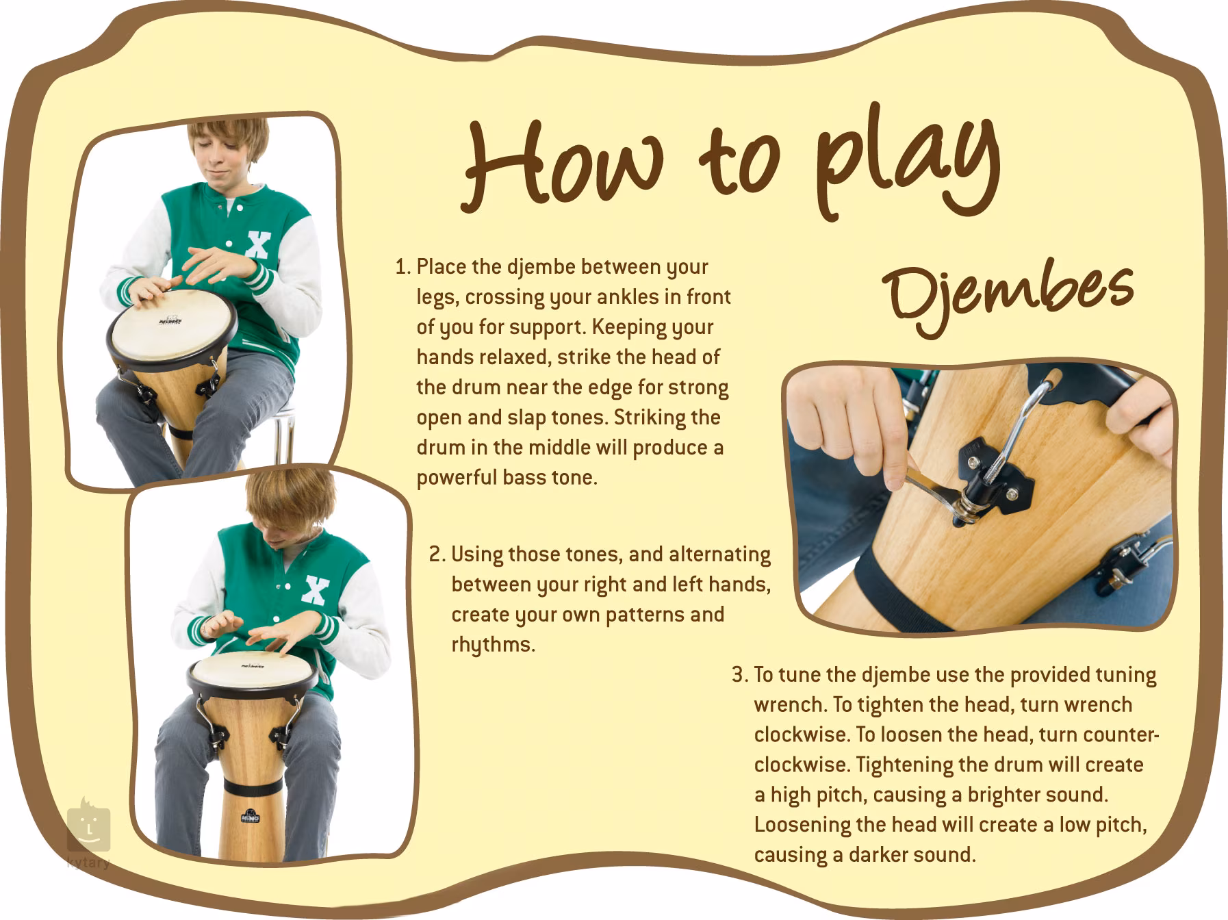 Wykonana z wyselekcjonowanego drewna kauczukowego płyta rezonansowa wykonana jest ze starannie wyselekcjonowanej koziej skóry - całkowicie idealnego materiału do uzyskania zrównoważonego brzmienia. Jego średnica wynosi 10 cali, kształt jest dość tradycyjny, więc można spodziewać się tradycyjnego brzmienia