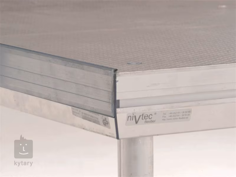 Szyna zaślepiająca z portfolio Nivtec do mocowania ekranu z tkaniny na zewnątrz sceny. Szyna ma 100 cm długości i waży 0,6 kg.