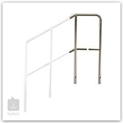 Końcówka poręczy schodowej do systemów scenicznych Nivtec. Poręcz ma 100 cm wysokości i 35 cm długości. Wykonana jest z wytrzymałej stali galwanizowanej.