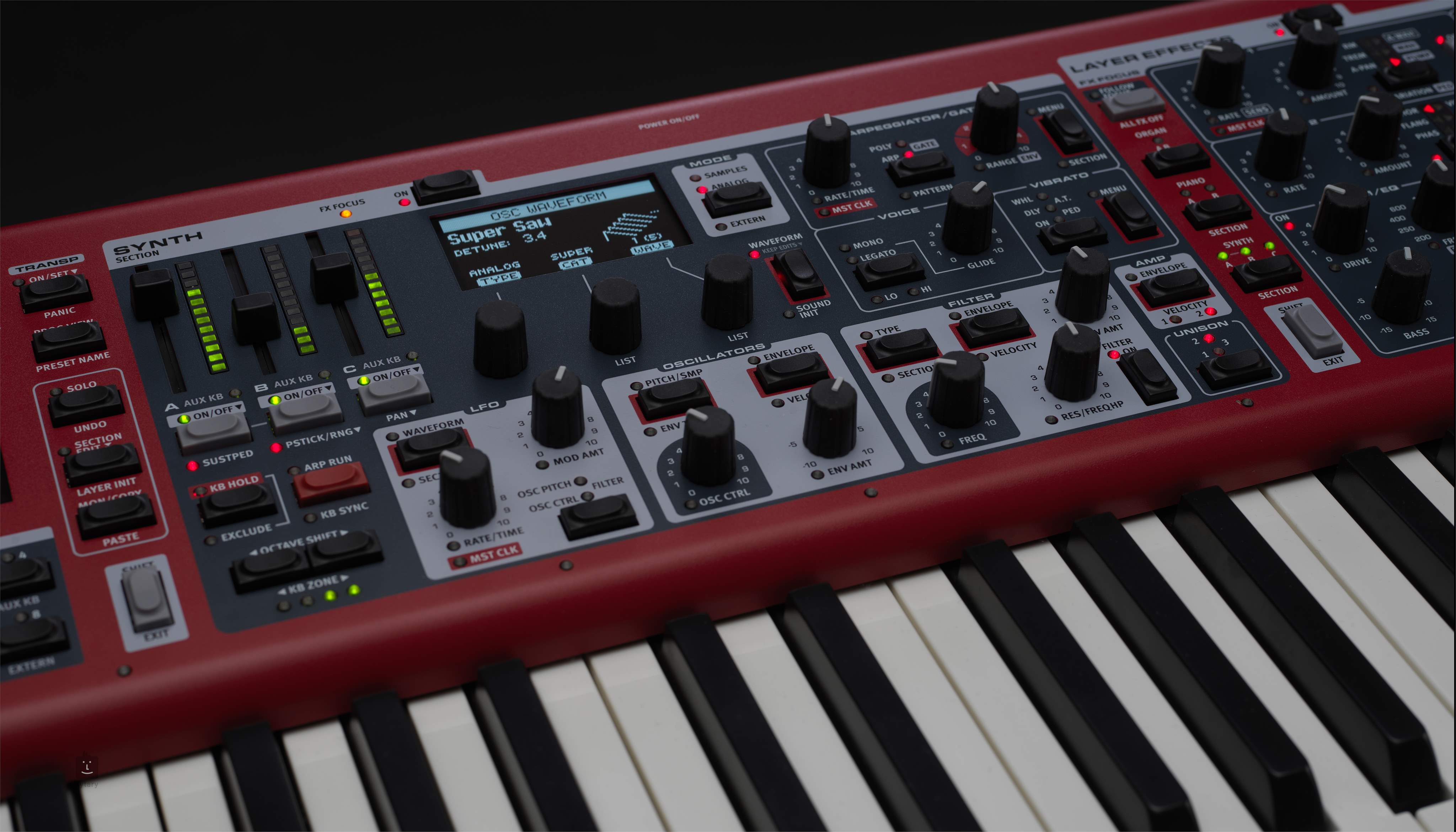Sekcjasyntezatora jest napędzana przez silnik Nord Wave 2 Synth Engine oparty na sprawdzonej topologii Sample Playback. Wśród niezliczonych funkcji warto wspomnieć 1 GB pamięci, 46-głosową polifonię, kilka typów oscylatorów (w tym analogowy), możliwość trzech niezależnych warstw, rozszerzoną kontrolę w czasie rzeczywistym, zaawansowany polifoniczny arpeggiator oraz tryby gate i pattern.