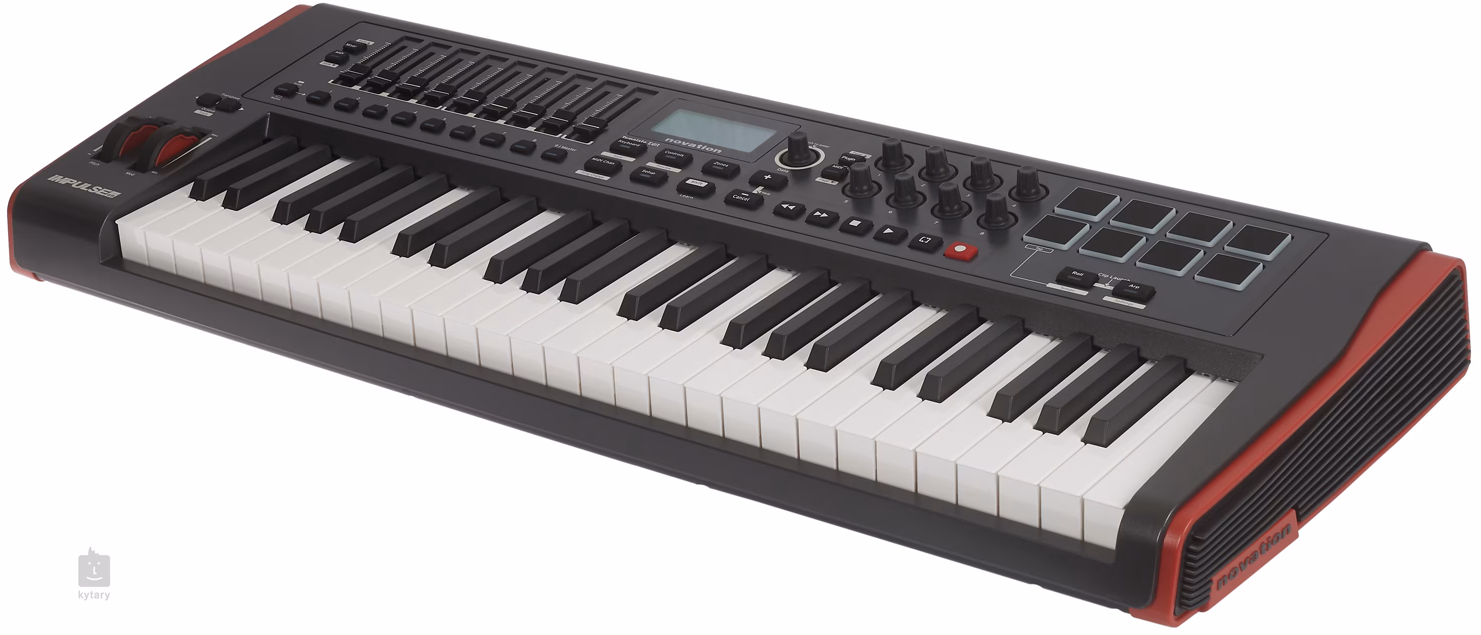 Twórz ekspresyjne występy Klawiatura charakteryzuje się szybką reakcją, standardowymi rozmiarami klawiszy i półwyważoną mechaniką. Nie brakuje wejścia dla pedałów sustain i expression. Precyzyjnie uchwyć swoją grę Technologia Novation High Rate Scan (HRS) skanuje klawiaturę 10 000 razy na sekundę, aby precyzyjnie zarejestrować każdy niuans Twojej gry. Łatwe przypisywanie wszystkich elementów sterujących Steruj ręcznie swoim ulubionym oprogramowaniem i ciesz się w pełni np. Ableton Live, Logic Pro lub Pro Tools; funkcja Automap automatycznie przypisuje elementy sterujące do parametrów DAW i poszczególnych wtyczek. Kształtuj dźwięk Manipuluj dźwiękami i miksami za pomocą nieskończonych pokręteł, niskich suwaków i przypisywanych przycisków z wizualną reakcją w postaci wyświetlacza LCD. Idź dalej z pomocą padów perkusyjnych Osiem dynamicznych i czułych na nacisk padów pozwala grać rytmy, tworzyć arpeggia i uruchamiać klipy w Ableton Live. Wystarczająco wytrzymały Kontroler jest wystarczająco solidny i wytrzymały, aby sprostać nawet trudnym warunkom podczas tras koncertowych. Włącz i graj Dzięki zasilaniu przez USB i dopracowanemu sprzętowi wystarczy podłączyć Impulse do komputera PC lub Mac z systemem OS X i można grać bez konieczności instalowania sterowników. Podłącz do wszystkiego Za pomocą 5-pinowego złącza DIN MIDI steruj syntezatorami sprzętowymi i modułami dźwiękowymi. Twórz muzykę od razu W zestawie znajduje się oprogramowanie Ableton Live Lite i bogata kolekcja licencjonowanych pętli od Loopmasters.
