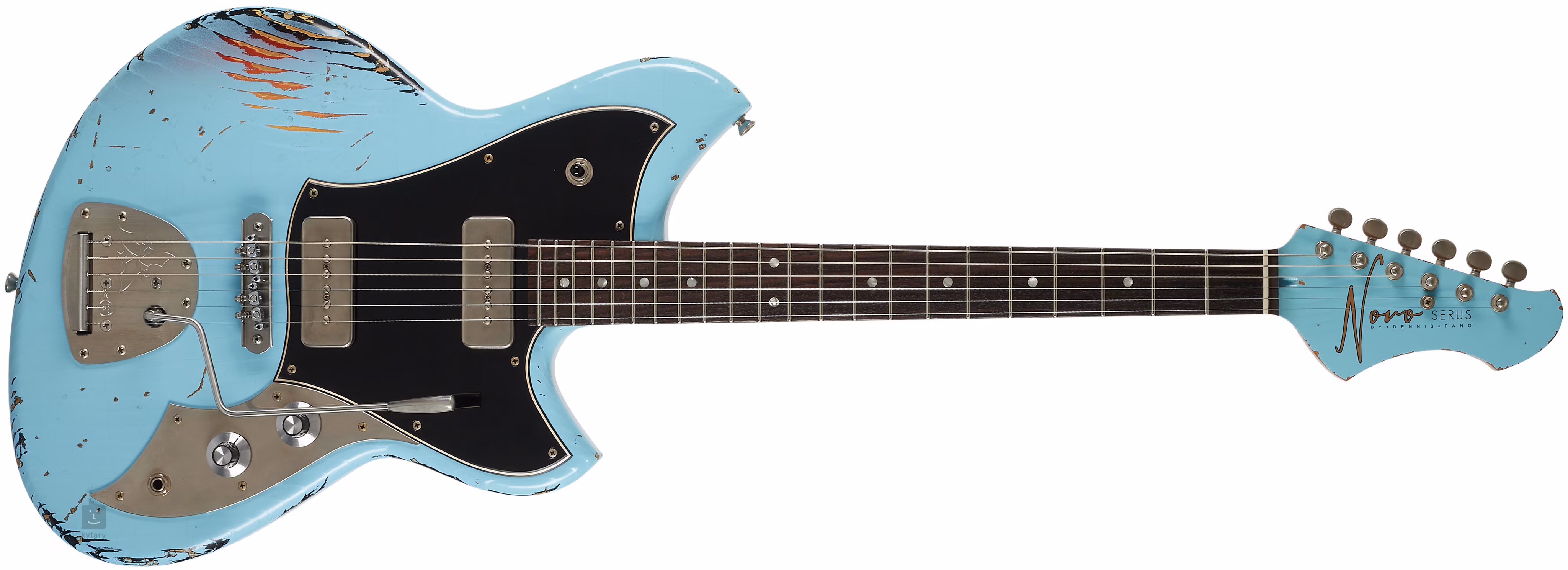 Jest to gitara elektryczna z korpusem z sosny w stylu offsetowym charakterystycznym dla modeli Serus, wykonana w amerykańskich warsztatach przez niewielki zespół doświadczonych lutników. Korpus zdobi wykończenie Daphne Blue over '64 3-Tone Burst, gdzie pod niebieskim lakierem prześwituje podstawowy kolor '64 3-Tone Burst, postarzane wykończenie (medium distress) oraz stylowa czarna płytka ochronna. Do klonowej szyjki o wygodnym profilu Medium C przyklejono palisandrową podstrunnicę z dwudziestoma dwoma progami z pakfongu/niklu-srebra (.047″x.095″). Z vintage'owym wyglądem korpusu współgra również wygląd szyjki, która dzięki obróbce termicznej zyskała urok i charakter drewna dojrzałego przez lata. Kombinowany promień podstrunnicy gwarantuje wygodne granie akordów przy progu zerowym oraz komfortowe granie i wyciąganie dźwięków w wyższych pozycjach podstrunnicy.