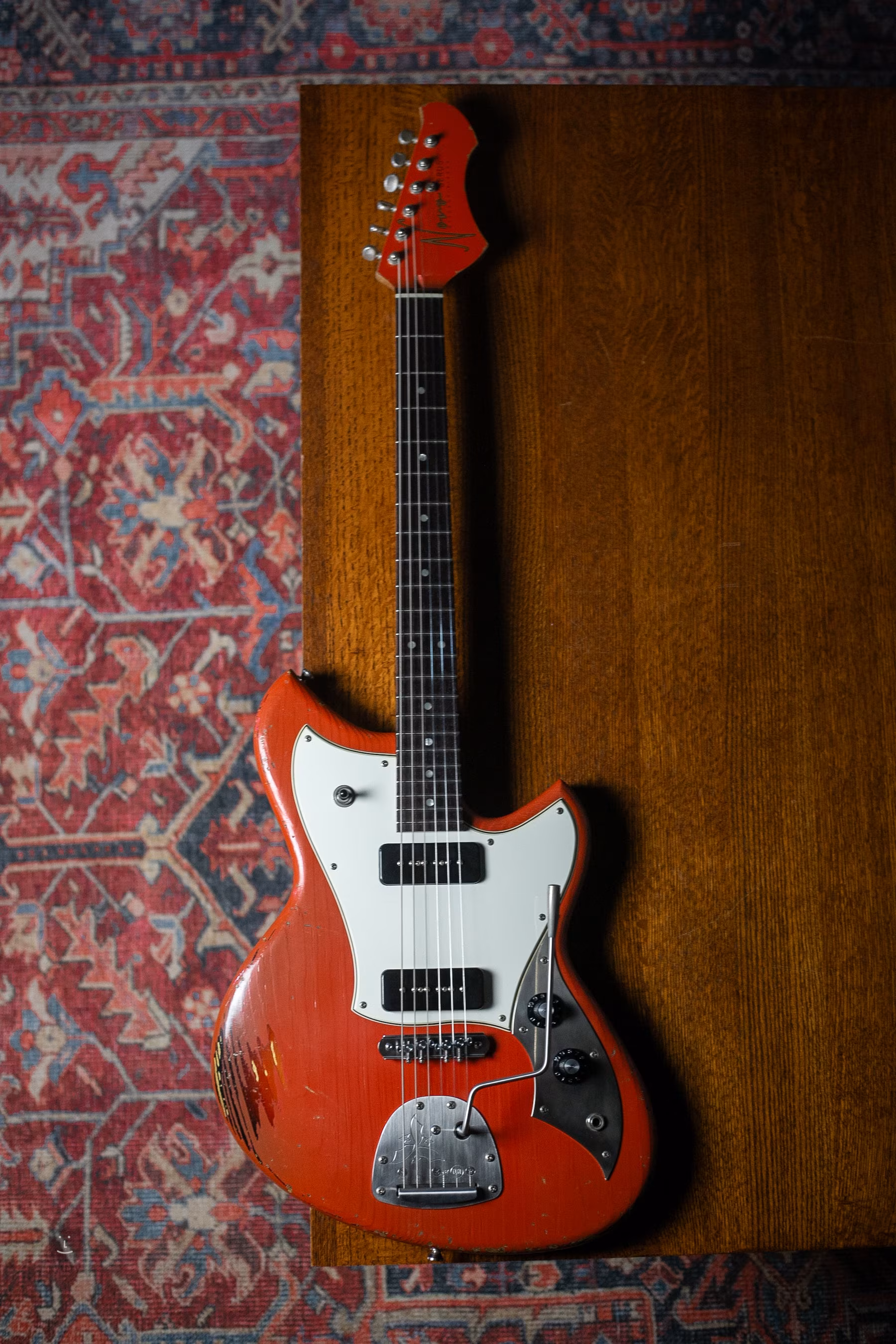 Jest to gitara elektryczna z sosnowym korpusem w stylu offsetowym modeli Serus, wykonana w amerykańskich warsztatach przez niewielki zespół doświadczonych lutników. Korpus zdobi Fiesta Red over 64 3-Tone Burst, gdzie pod czerwonym lakierem prześwituje podstawowy kolor 3-Tone Sunburst, postarzane wykończenie (medium distress) i stylowy jasny pickguard. Do klonowego gryfu o wygodnym profilu Medium C przyklejono palisandrową podstrunnicę z dwudziestoma progami z pakfongu/niklu-srebra (.047″x.095″). Z vintage'owym wyglądem korpusu współgra również wygląd gryfu, który dzięki obróbce cieplnej zyskał urok i charakter dojrzałego drewna. Połączony promień podstrunnicy gwarantuje wygodną grę akordów przy zerowym progu oraz komfortową grę i wyciąganie tonów w wyższych pozycjach podstrunnicy.
