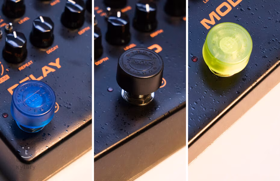 Kolorowe nakładki na standardowe przełączniki nożne 3-PDT NST-1 PEDAL TOPPER zwiększą komfort gry i dokładność podczas przełączania.