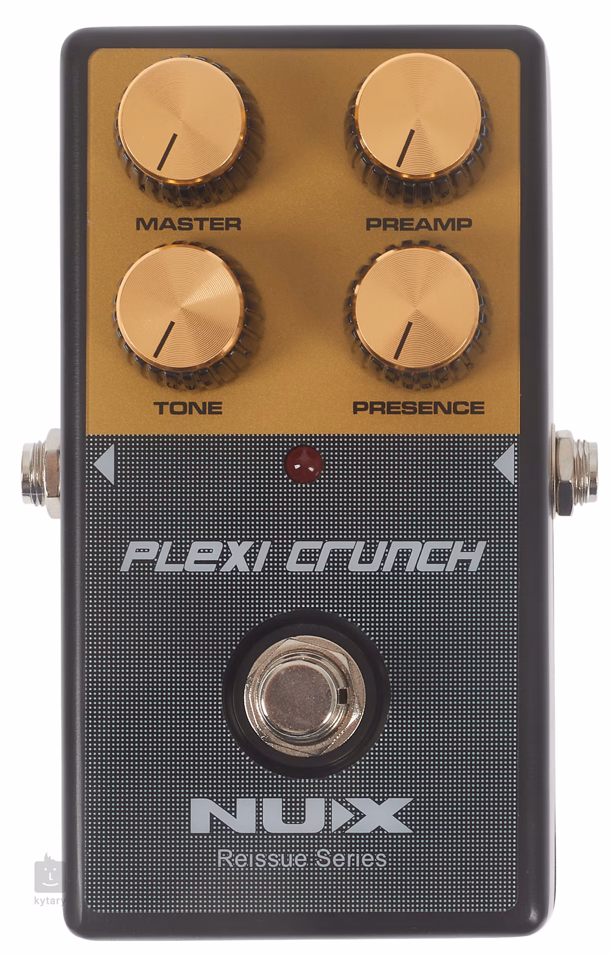 Plexi Crunch to efekt zniekształcający z serii NUX Reissue, inspirowany słynnymi brytyjskimi wzmacniaczami hi-gain, których brzmienie zdefiniowało złote lata rocka i rodzącego się heavy metalu. Jest to analogowy efekt z trzema poziomami wzmocnienia i tranzystorem FET symulującym zniekształcenia lampowe, którego nie powinni przegapić miłośnicy soczystego brzmienia rocka, hard rocka i heavy metalu z charakterystycznym brytyjskim nadrukiem. Pudełko jest podłączone w trybie true-bypass. Zasilanie zapewnia zasilacz 9V lub bateria 9V.