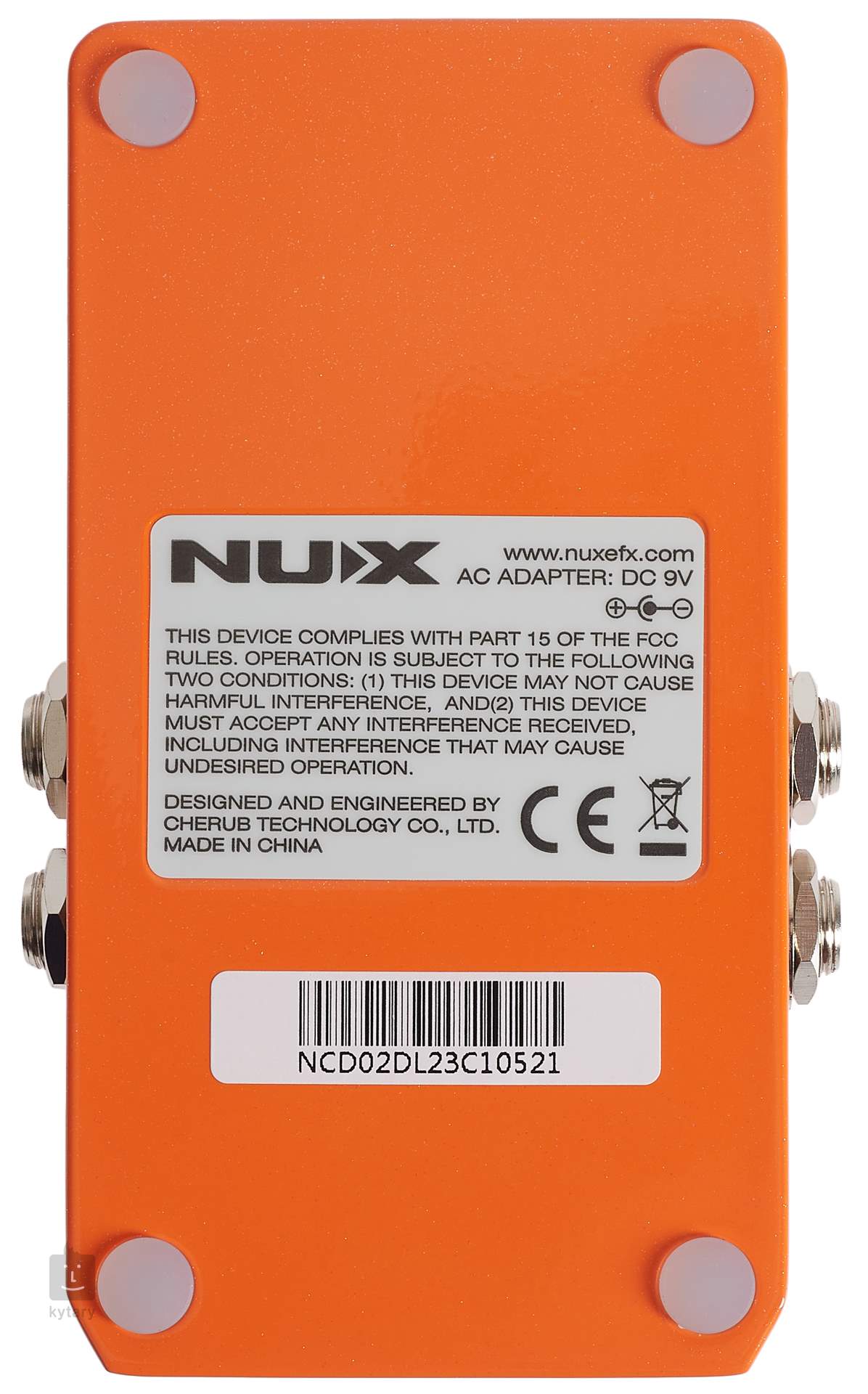 NUX TIME CORE DELUXE MKII to stereofoniczny / monofoniczny efekt delay, który oferuje siedem rodzajów efektów delay. W szczególności Phi Digital Delay - cyfrowy delay (czas opóźnienia: 80 ms - 1000 ms), Analog Delay (40 ms - 403 ms), Modulation Delay - cyfrowy delay + chorus (20 ms - 1500 ms), Tape Echo - symulacja echa taśmowego (55 ms - 552 ms), Pan Delay (80 ms - 1000 ms), Verb Delay - cyfrowy delay + plate reverb (80 ms -1000 ms) i Reverse Delay (320 ms - 1240 ms). Pozostałe elementy sterujące określają czas opóźnienia, stosunek sygnału suchego do mokrego oraz liczbę powtórzeń. W trybie Alt pokrętło Repeat zmienia parametry modulacji efektu lub pogłosu.