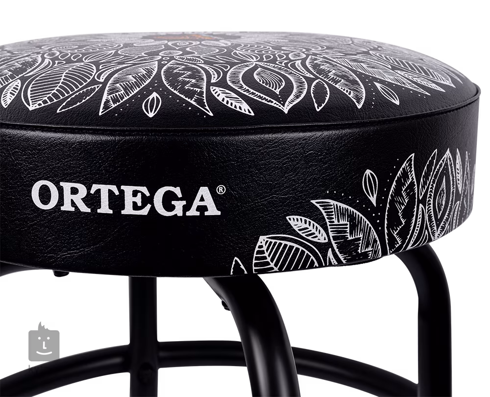 Wygodny stołek gitarowy Ortega z metalową konstrukcją, na której znajduje się swobodnie obracające się siedzisko z grubą wyściółką. Wraz z metalowym podnóżkiem, stołek zapewnia wygodną grę na scenie, w sali prób lub w domu.