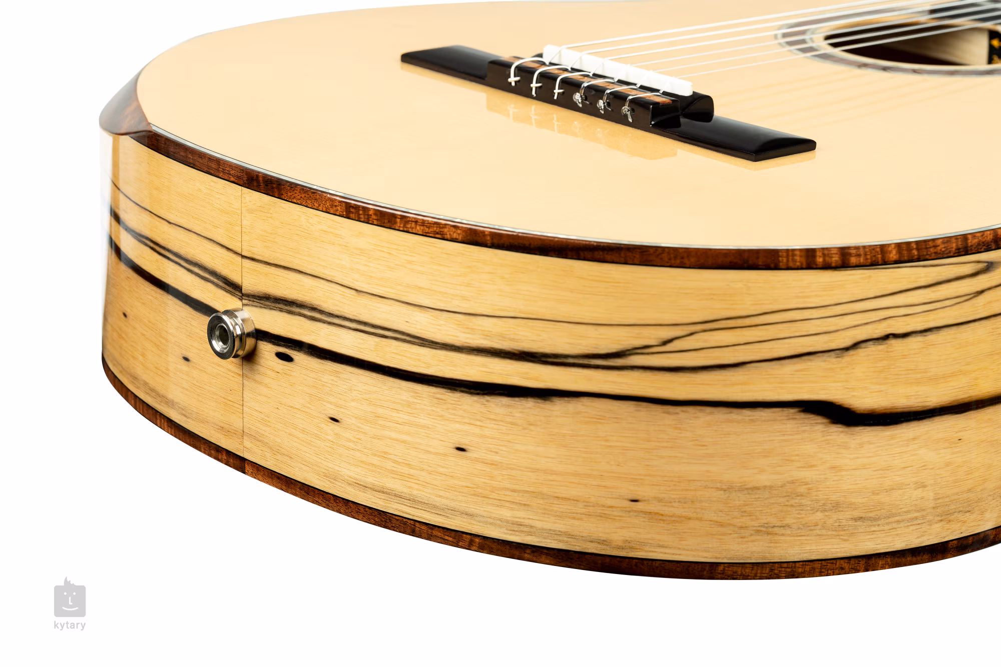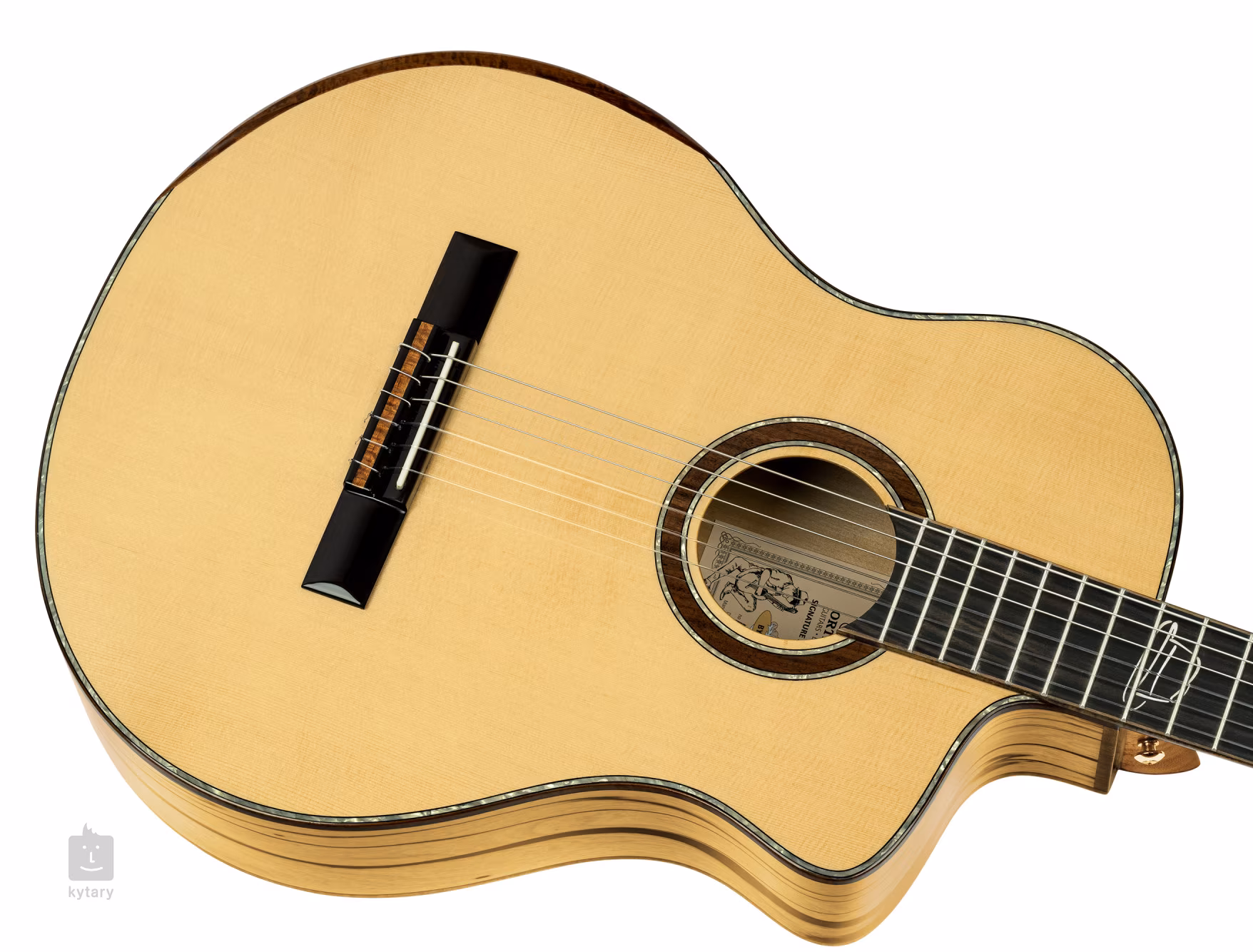 Przód gitary wykonano z litego świerku amerykańskiego, natomiast tył i boki z ręcznie selekcjonowanego białego hebanu o ekskluzywnym usłojeniu. Komfort gry podnosi ergonomiczny podłokietnik i wycięcie w dolnej części korpusu. Węższa mahoniowa szyjka jest wyposażona w hebanową podstrunnicę z dziewiętnastoma progami. Struny zamontowane są w firmowych maszynkach do strojenia i hebanowej podstrunnicy. Ładne wykonanie podkreśla akacjowe wiązanie korpusu, imitacja masy perłowej i drewniana rozeta.