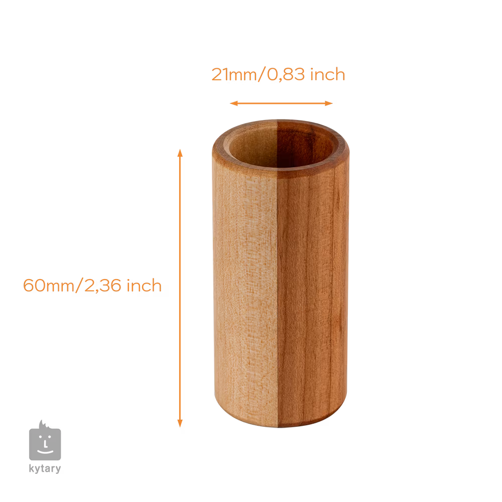 Drewniane slidy Ortega Cherry/Birch stanowią oryginalną alternatywę dla klasycznych wersji szklanych lub metalowych i zapewniają wyjątkowo ciepły, naturalny i delikatnie błyszczący ton. Połączenie europejskiej brzozy i wiśni łączy tradycyjny charakter techniki bottleneck z naturalnymi właściwościami akustycznymi wysokiej jakości drewna.