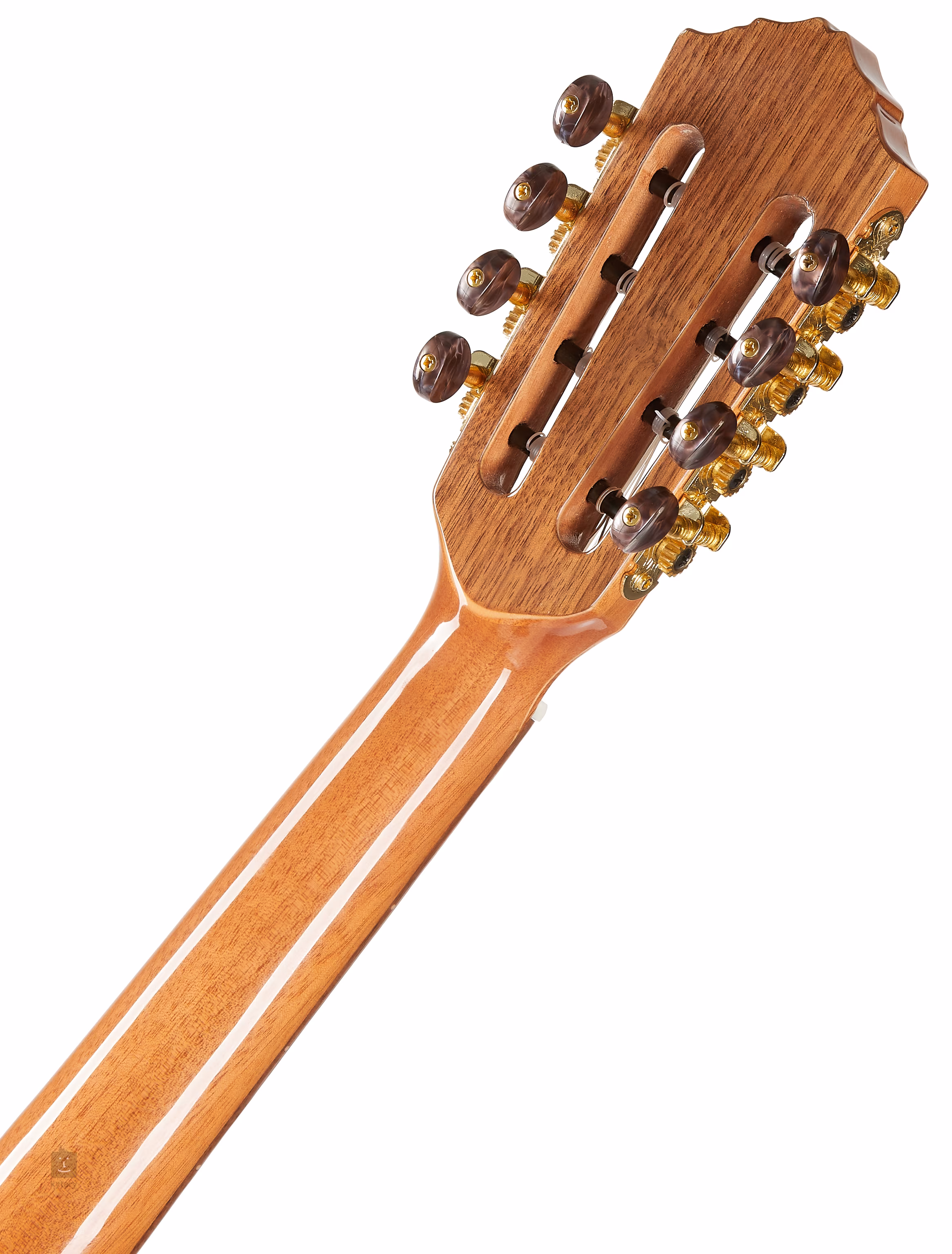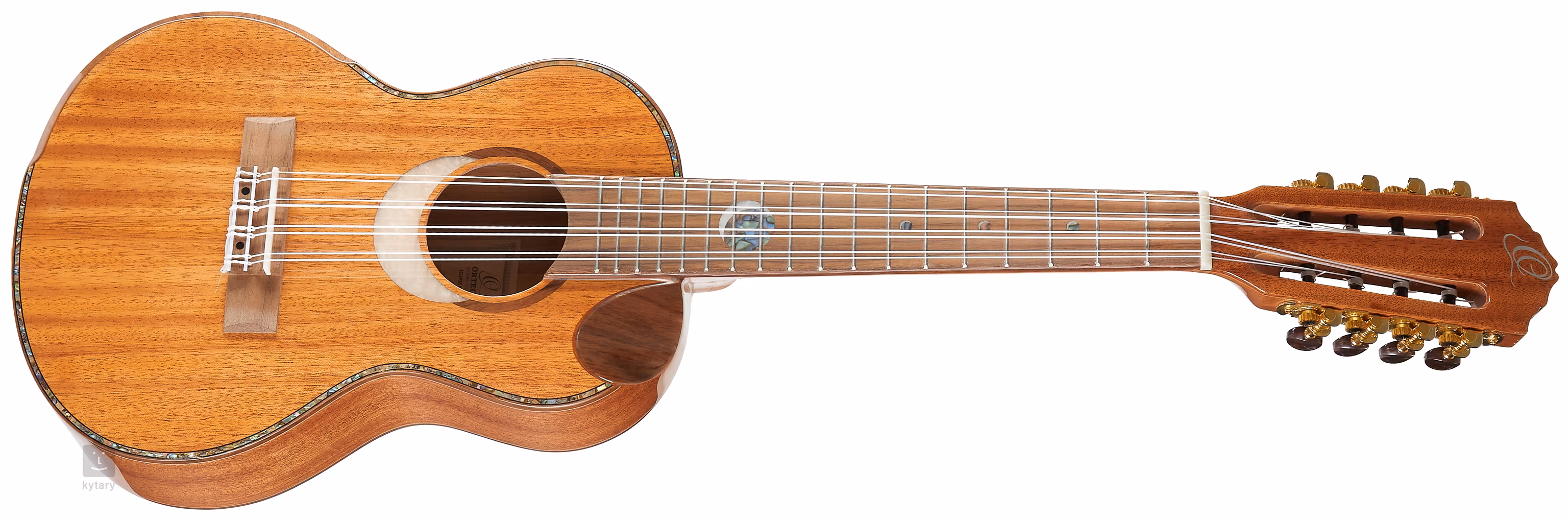 Korpus tego niekonwencjonalnego ośmiostrunowego ukulele tenorowego wykonany jest z litego mahoniu z błyszczącym lakierem. Fazowany podłokietnik i ergonomiczne wycięcie w dolnej części korpusu zapewniają obu dłoniom większy komfort gry. Szyjka okoumé jest wyposażona w osiemnastostopniową podstrunnicę z orzecha włoskiego. Struny są przymocowane za pomocą siodełka i kostnego progu zerowego w orzechowej podstrunnicy oraz klasycznych otwartych tunerów w złotym wykończeniu. Luksusowy design i odważną koncepcję instrumentu podkreślają dwa otwory dźwiękowe, perłowe znaczniki pozycji z motywami zaćmienia, orzechowy korpus i podstrunnica oraz perłowy pickguard.