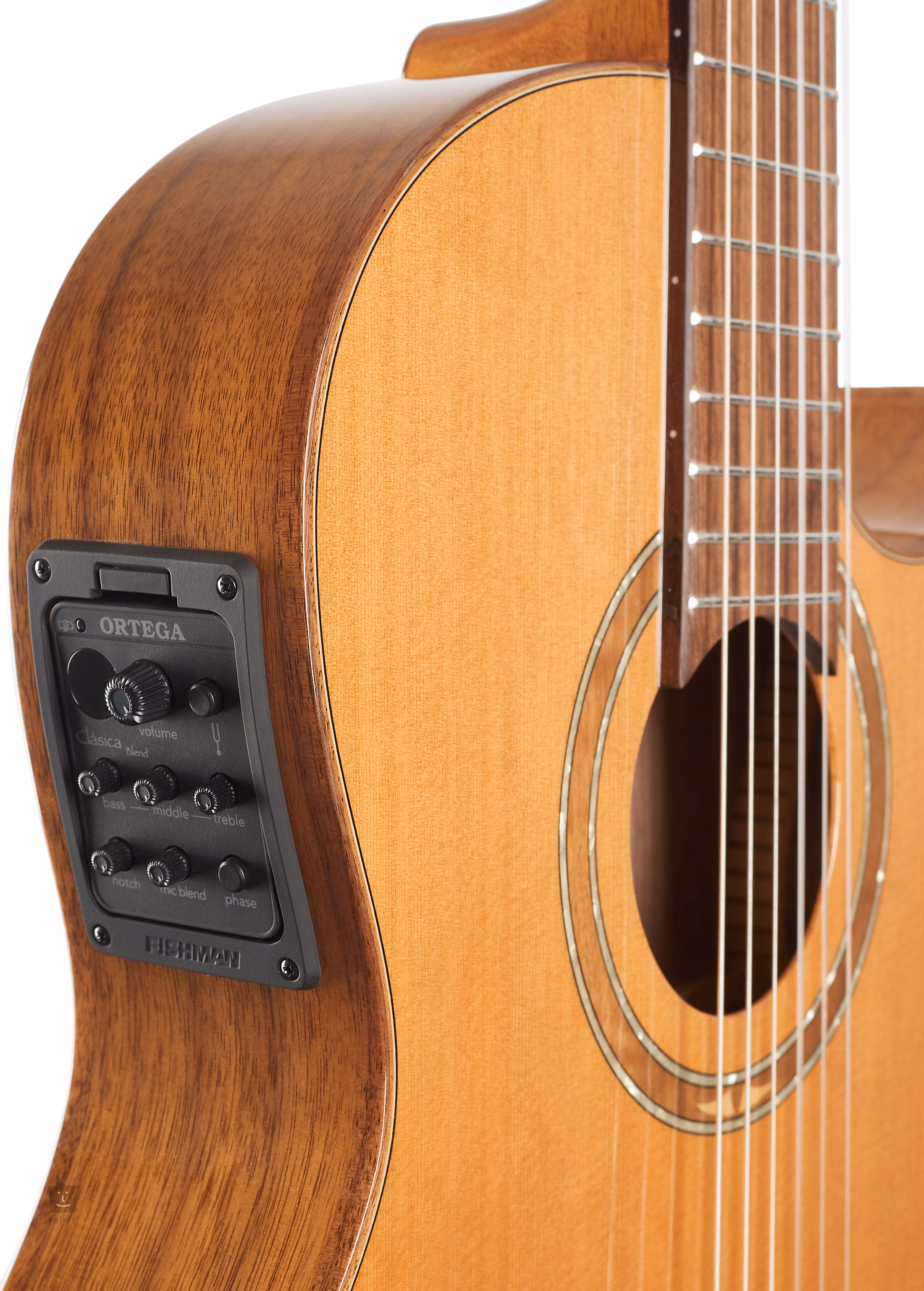 Gitara wyposażona jest w elektronikę Fishman Nylon Clasica Blend z wbudowanym tunerem i mikrofonem, trzypasmowy korektor, regulację głośności, przycisk Phase do odwracania fazy (redukcja szumów) oraz filtr Notch z funkcją eliminacji sprzężeń.