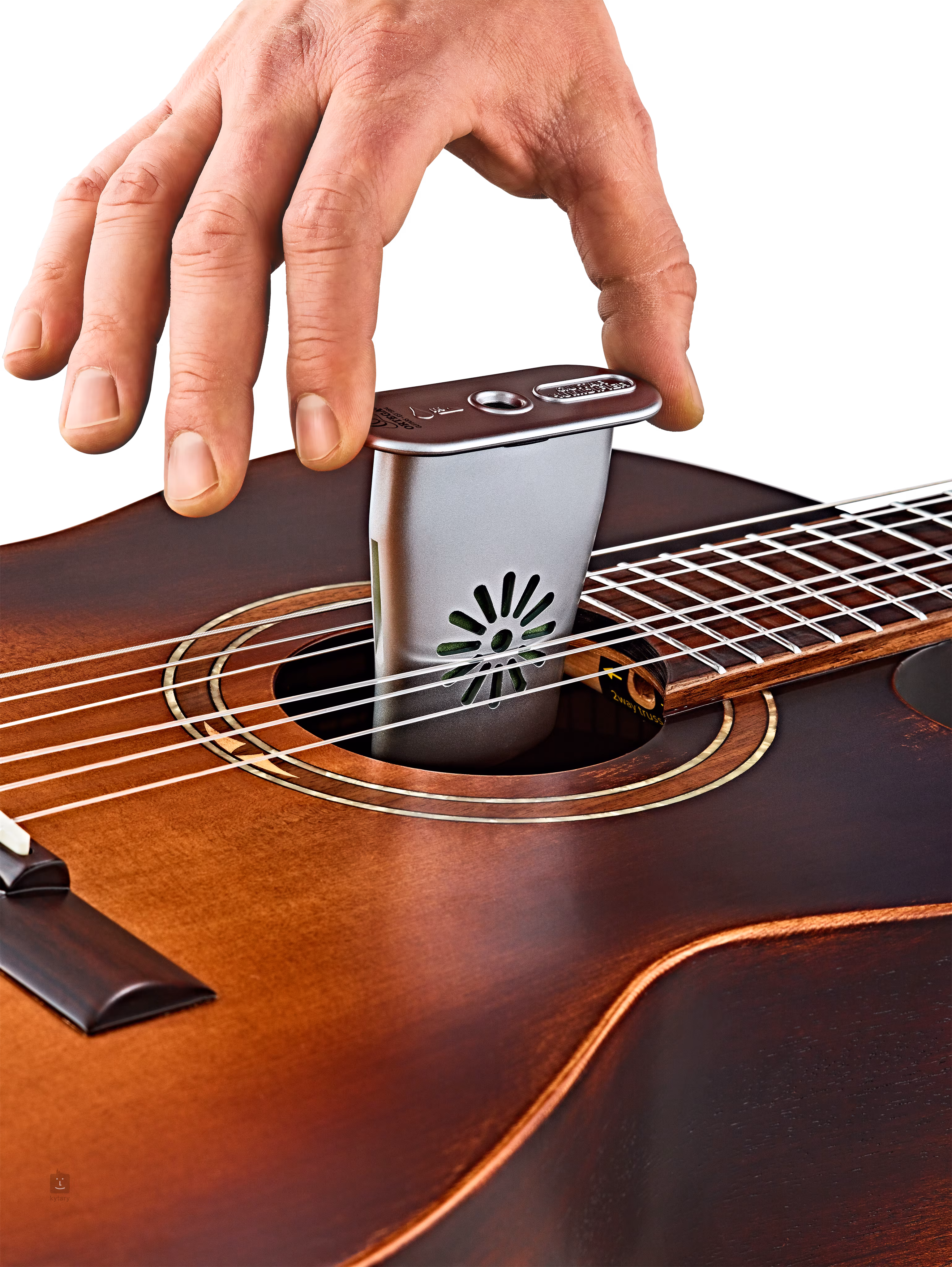Ten nawilżacz do gitar akustycznych i klasycznych można łatwo umieścić w płycie rezonansowej, nie dotykając żadnej części instrumentu. Z jego pomocą można łatwo zapobiec wysychaniu i późniejszej deformacji drewna. Opakowanie zawiera gąbkę i strzykawkę.